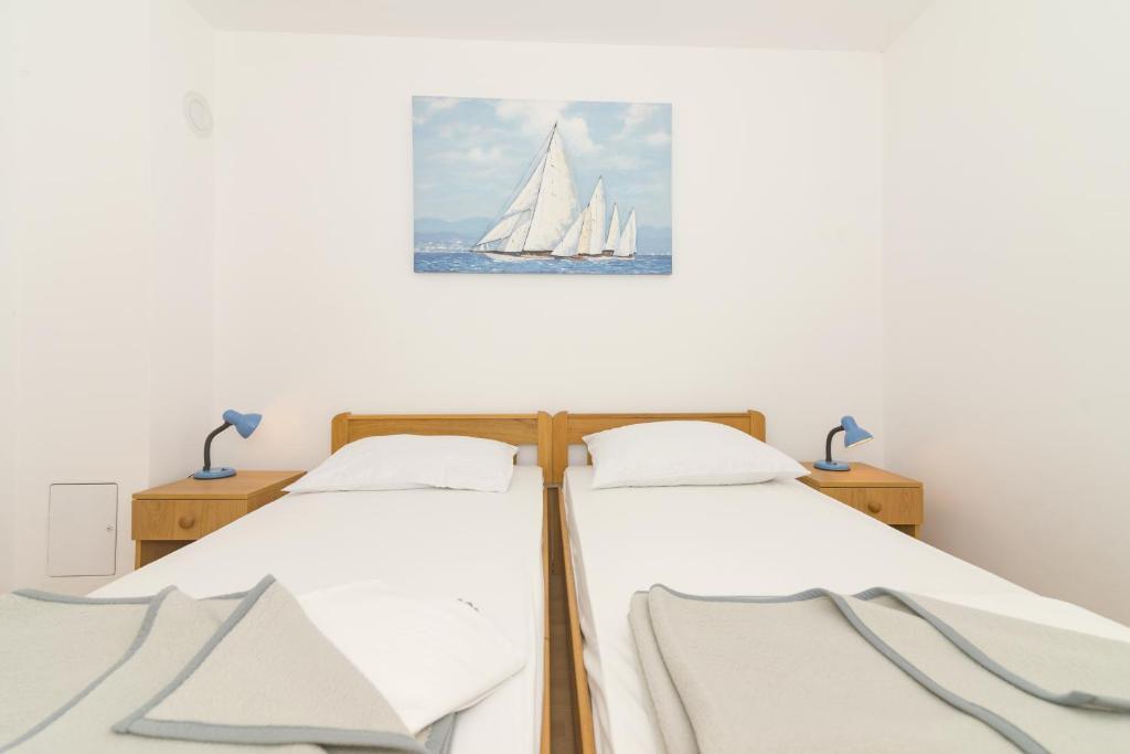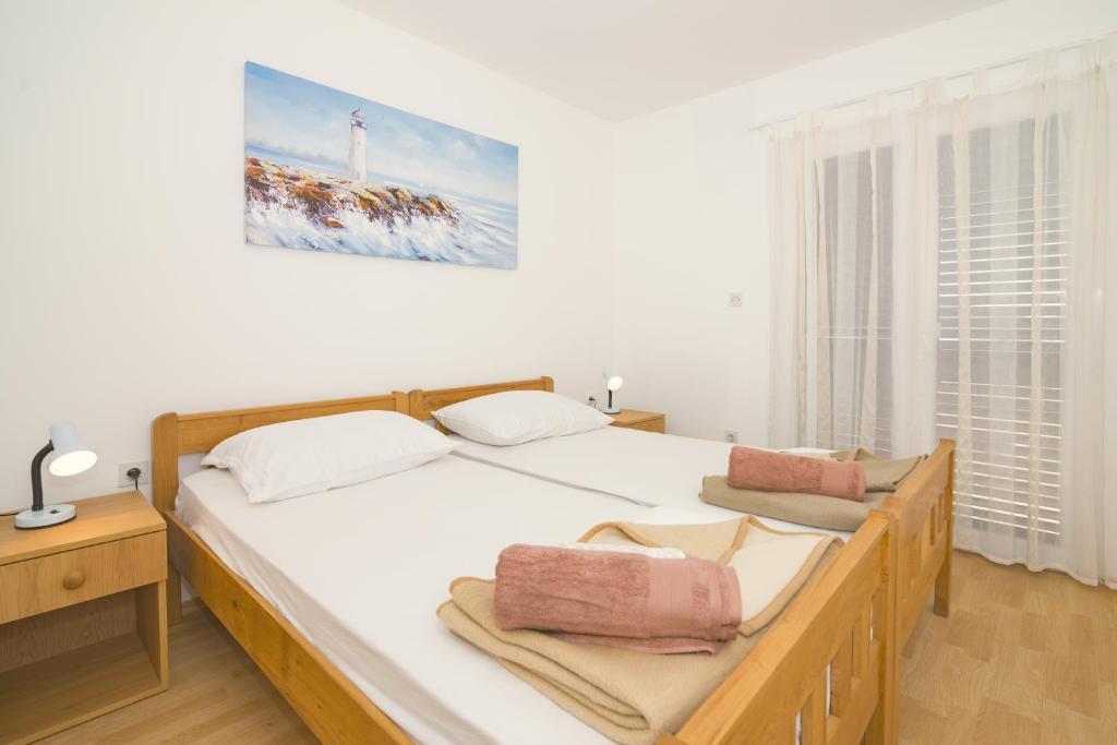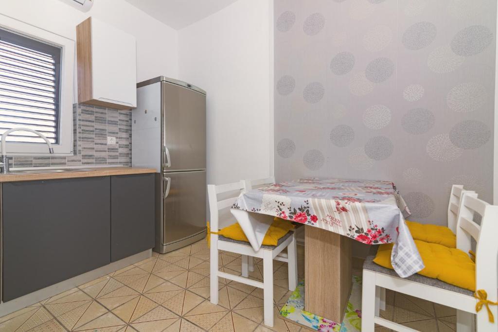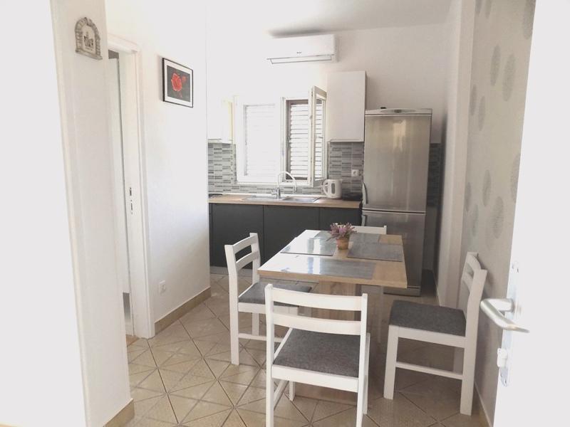 El apartamento está situado en un edificio residencial en el 1er piso. La terraza ofrece vistas al mar y a la playa, que se encuentra a solo unos minutos a pie del alojamiento. El apartamento consta de un pasillo que conduce al salón y a la cocina. En la sala de estar hay una cama plegable. El salón tiene salida a la terraza. El dormitorio con cama doble se encuentra en el lado norte del apartamento, con vista al estacionamiento, no está expuesto al sol todo el día, por lo que es agradable permanecer allí. El baño está equipado con ducha y tiene lavadora. Pirovac es una ciudad pequeña, el centro está a pocos minutos a pie, por lo que no es necesario utilizar el coche, hay aparcamiento gratuito delante del edificio.