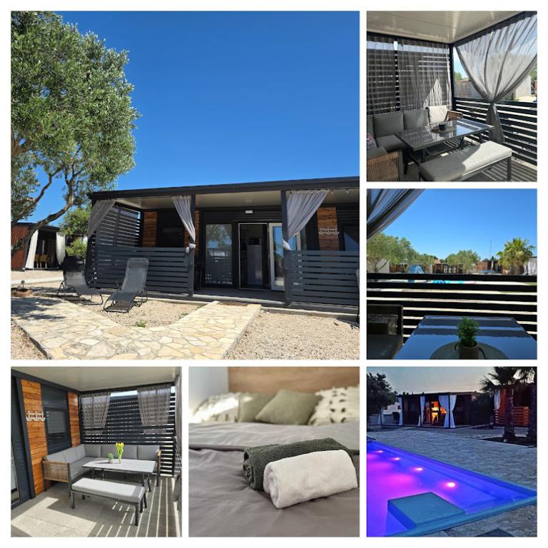 Casa Móvil Maslina: Tu oasis de paz junto al mar. Bienvenido a la Casa Móvil Maslina, una casa móvil moderna ubicada en una zona tranquila de Pirovac, a solo 200 m de la playa. La casa tiene capacidad para 5 personas y cuenta con dos dormitorios con un total de 4 camas, un salón con sofá cama, una cocina equipada y un baño. Disfruta de la amplia terraza cubierta con vistas a la piscina, perfecta para tomar un café por la mañana o relajarse por la noche. Los huéspedes también tienen acceso a una plaza de aparcamiento. La Casa Móvil Maslina es ideal para unas vacaciones en familia, con paz, naturaleza y cerca del mar. ¡Vive la hospitalidad de Dalmacia y reserva tus vacaciones hoy mismo!