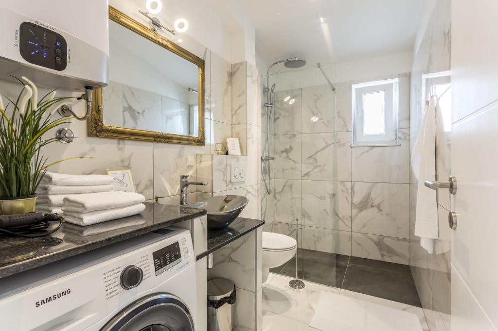SeaHouse HAWK es un apartamento vacacional moderno y funcional en Pisak, un pequeño y encantador pueblo de la costa adriática. Este alojamiento es ideal para parejas, familias o amigos que quieran disfrutar del mar cristalino, la hermosa playa y el ambiente relajado de Dalmacia. Ubicación y alrededores: Ubicado a solo unos 120 m de la playa, el apartamento ofrece fácil acceso al mar y a todos los servicios: restaurantes, bares y tiendas están a poca distancia a pie. Pisak es un hermoso pueblo turístico conocido por su mar cristalino, hermosas playas de guijarros y un ambiente relajado, ideal para unas vacaciones. Información sobre el alojamiento: - Amplio apartamento con 2 dormitorios y capacidad para hasta 6 personas (2 camas dobles + sofá cama). - Cocina y salón totalmente equipados para una estancia confortable. - Aseo lateral con lavadora. - 2 aires acondicionados (gratuitos) y ventiladores de techo en las habitaciones. - Amplia terraza de 35 m² ideal para tomar un café por la mañana o charlar por la noche. - Aparcamiento privado gratuito.