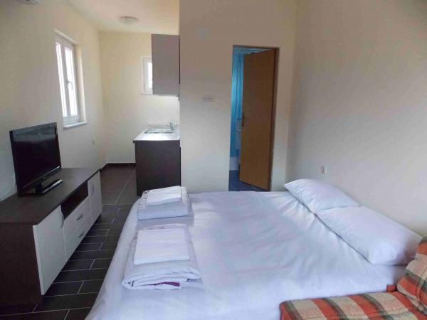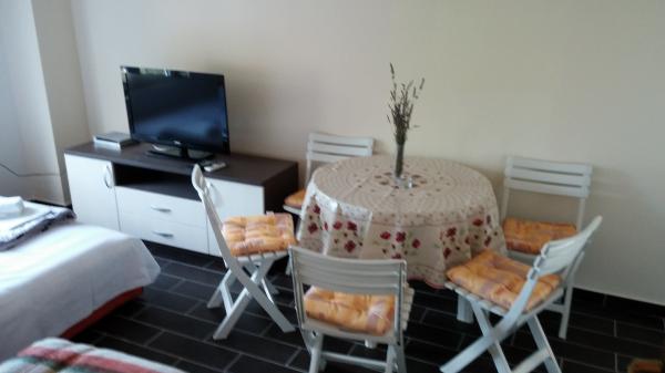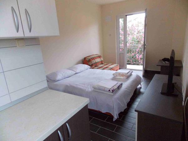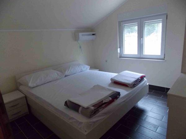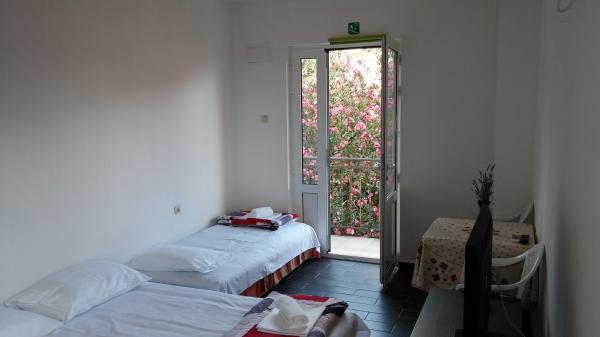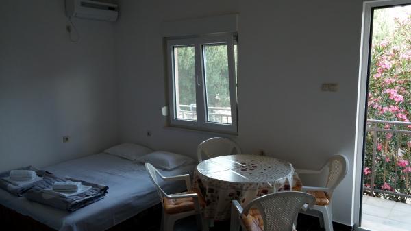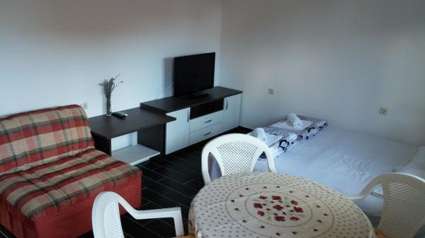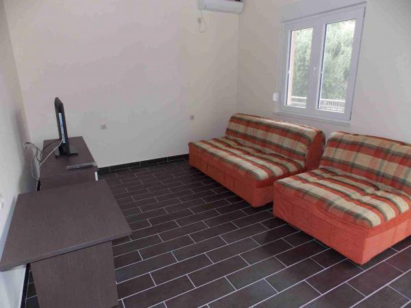Los apartamentos están situados en el centro de los datos. Están situados a 100 metros del mar y hermosas playas. Tienda, oficina de correos, campo de deportes, iglesia, parada de autobús y el intercambio dentro de un radio de 40 metros del apartamento. La instalación consta de cuatro habitaciones, dos apartamentos independientes para dos personas con una cama supletoria, un apartamento para dos personas con tres camas supletorias y un gran apartamento para cuatro personas y tres camas supletorias. Los apartamentos son nuevos y están equipadas con aire acondicionado, TV, baño y cocina. Los apartamentos tienen el uso de dos terrazas y un patio con barbacoa en la sombra. Hay aparcamiento reducida, y el precio incluye el impuesto de turismo. Ropa de cama y toallas están incluidas y se cambian cada siete días.