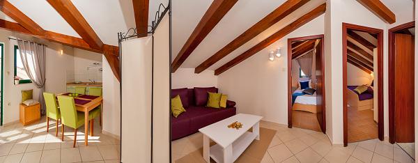 Totalmente equipado y modernos apartamentos en una casa en un tranquilo y apacible lugar Žaboriću, en una calle sin salida rodeado de verde .. Segunda fila, a 40 m de la playa. Uso de la piscina bajo petición.