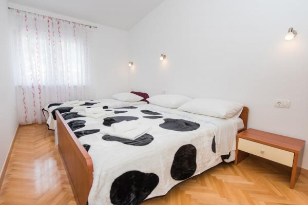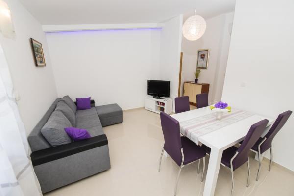 Totalmente equipados y modernos apartamentos en una zona tranquila de Podstrana, situado junto al mar; El apartamento está situado a 30 metros de la playa. Supermercado y una panadería a sólo 2 minutos a pie. Médico y farmacia están a 20 metros. El apartamento tiene 2 balcones, 2 dormitorios y 2 camas supletorias para cuatro personas. Hay dos cocinas y dos entradas por lo que es ideal para dos familias.