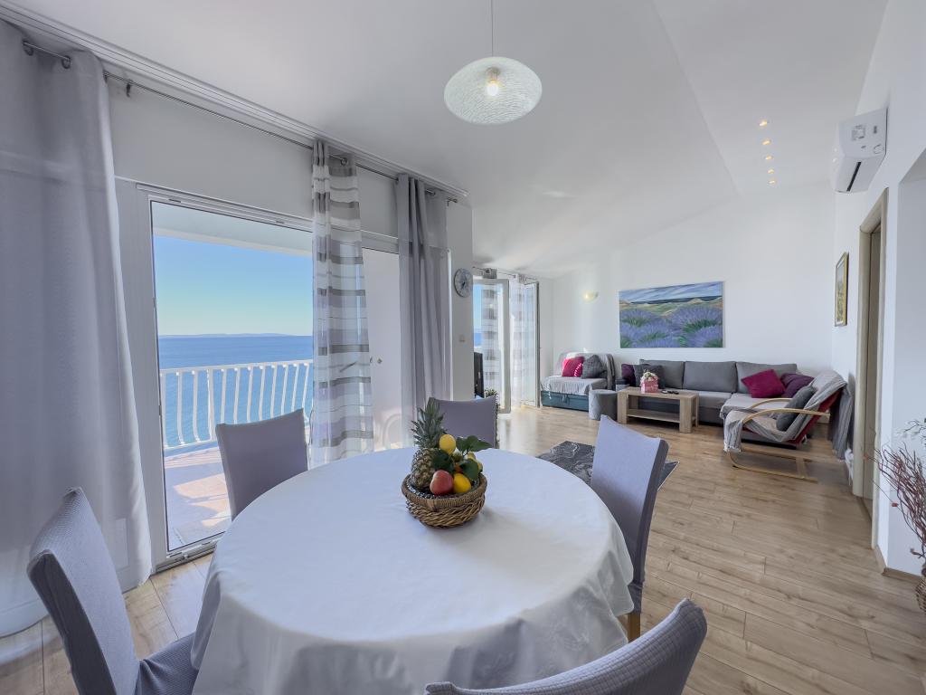 Departamento totalmente equipado, de dos recámaras, dos aires acondicionados, amplio balcón wi fi, sala comedor y cocina y un baño amplio, ubicado en Sv. Martin Podstrana al mar, con una hermosa vista de las islas y la ciudad de Split. La playa es de guijarros, apta para el baño de niños con un gran paseo junto al mar. Es ideal para familias con niños porque la carretera no está cruzada. El patio está vallado donde hay estacionamiento y barbacoa. Cerca hay tiendas, restaurantes, pizzerías, cafeterías, tiendas, médico, farmacia y consultorio dental, cerca de Split con los monumentos culturales protegidos por la UNESCO: Sibenik, Trogir, Solin y Omis. Apartment s es amplio y cómodo y tiene 4 tumbonas. El apartamento es amplio y cómodo con un gran balcón-terraza con sombrillas con hermosas vistas al mar a tan solo 30 metros del mar ven y compruébalo por ti mismo. cancha de tenis cercana, club de equitación, senderos para bicicletas, paseos en bote a islas cercanas, comida local, pescado fresco, mariscos y otras especialidades oficina de precios