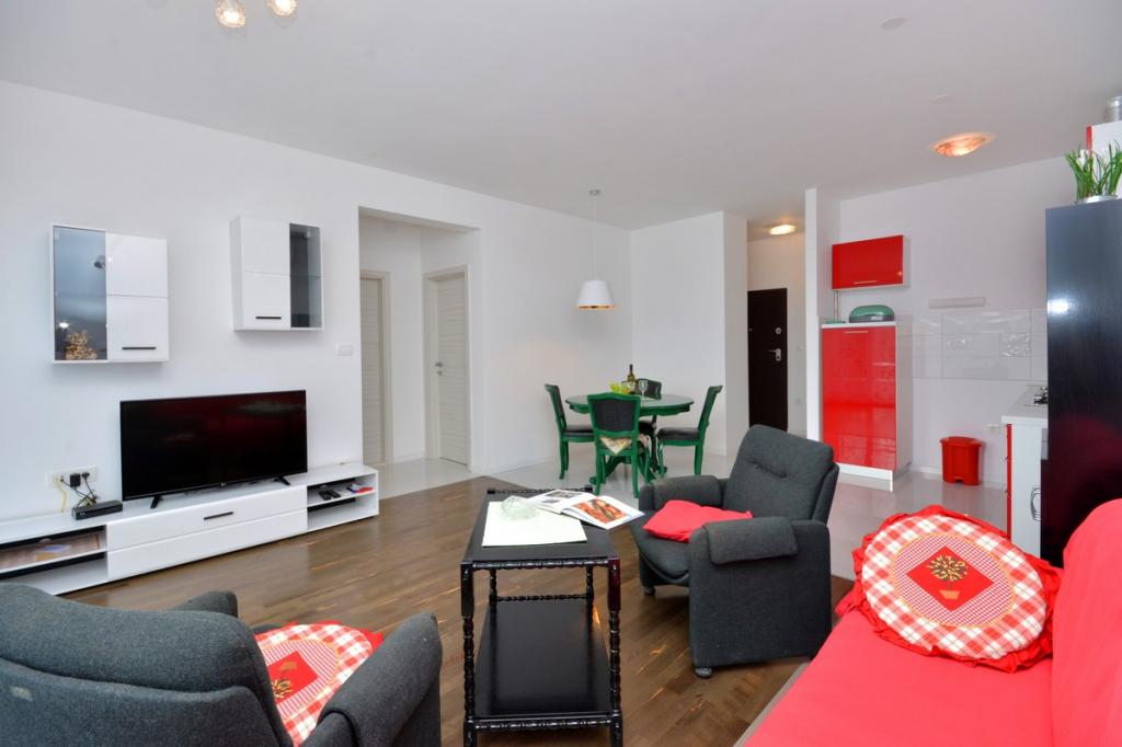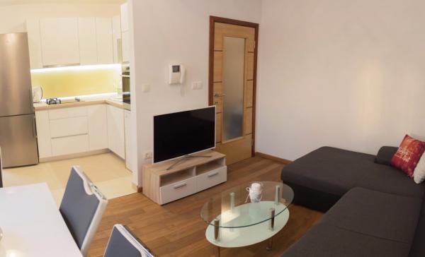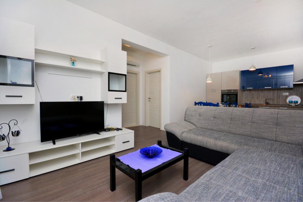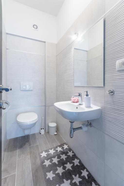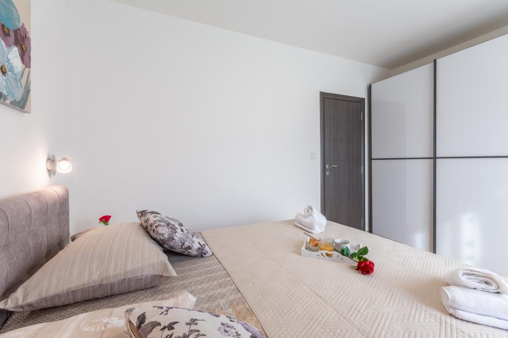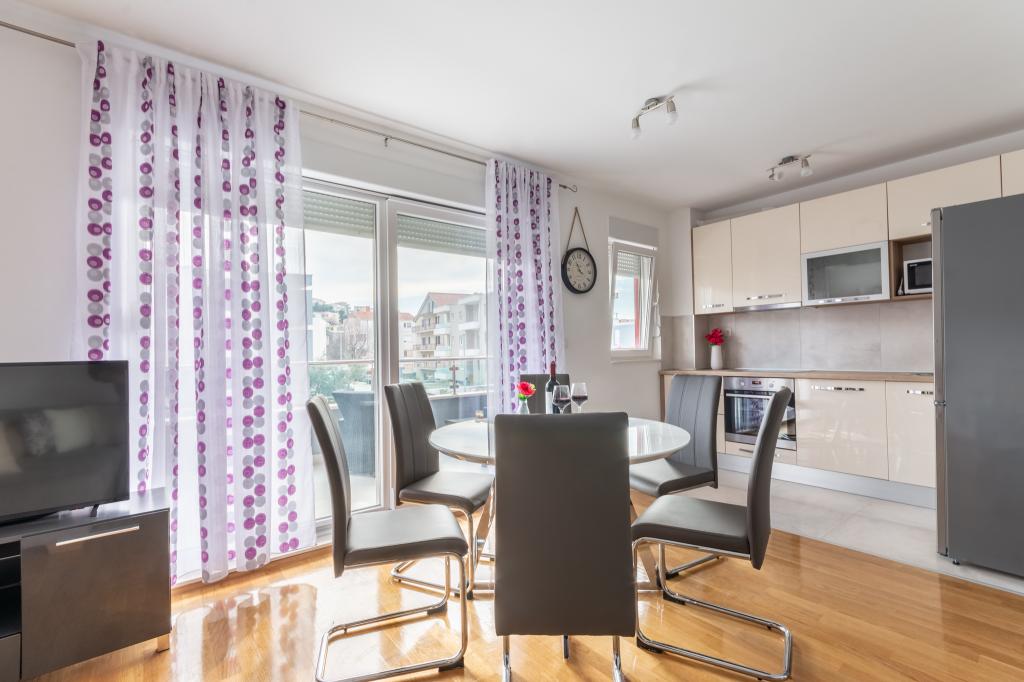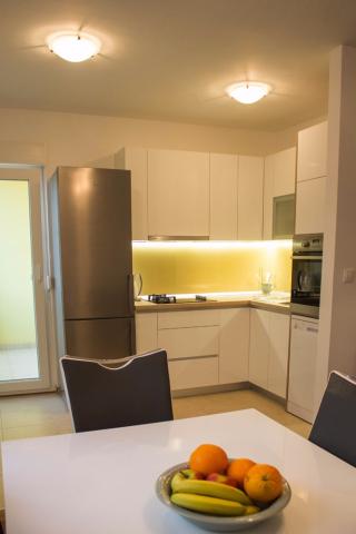 Este moderno apartamento lujosamente amueblado en una zona tranquila de Podstrana, hermoso apartamento está ubicado en un edificio nuevo con 2 dormitorios, sala de estar, cocina, terraza, tv-wi-fi, lavadora, aire acondicionado, cerca de la playa a solo 70 mt, estacionamiento privado. Cerca hay una estación de autobuses, un mercado, supermercados, bares, restaurantes, comida rápida y similares. Podstrana se encuentra cerca de la ciudad de Split a solo 10 km.