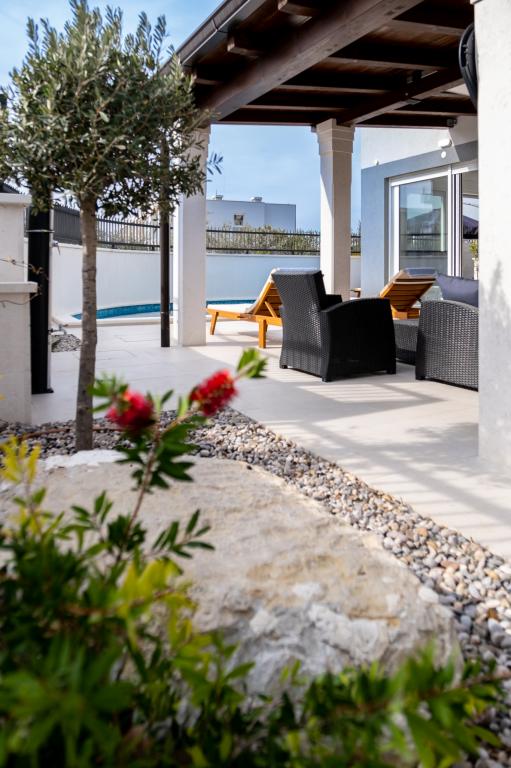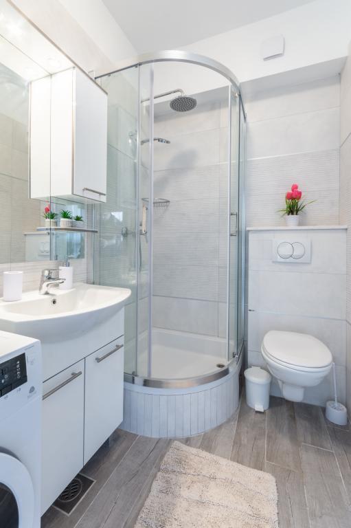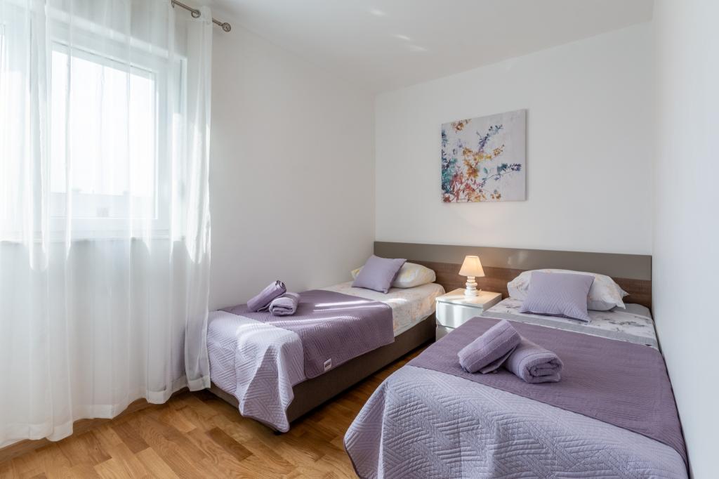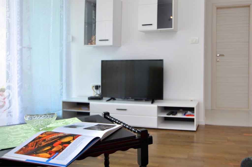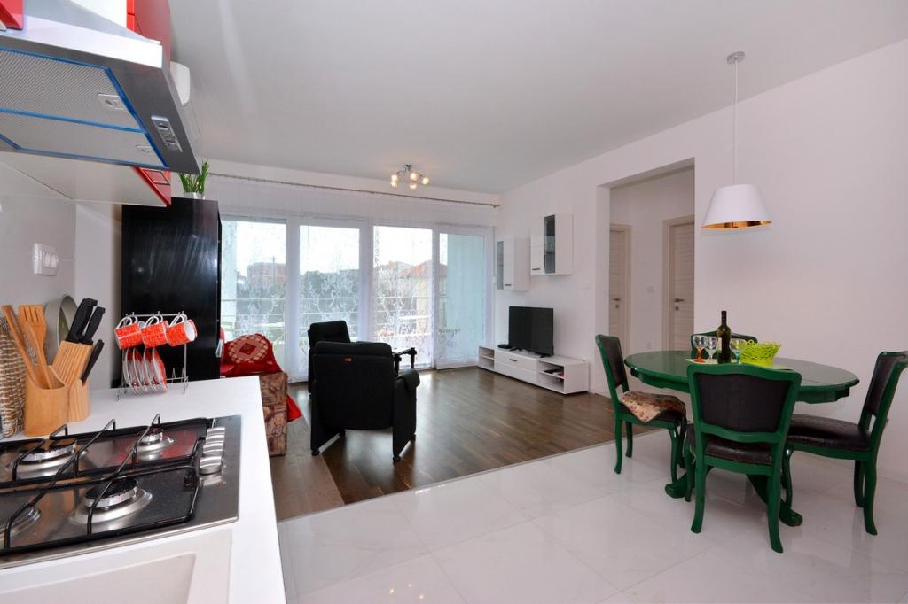 Este moderno apartamento lujosamente amueblado en una zona tranquila de Podstrana, hermoso apartamento está ubicado en un edificio nuevo con 2 dormitorios, sala de estar, cocina, terraza, tv-wi-fi, lavadora, aire acondicionado, cerca de la playa a solo 70 mt, estacionamiento privado. Cerca hay una estación de autobuses, un mercado, supermercados, bares, restaurantes, comida rápida y similares. Podstrana se encuentra cerca de la ciudad de Split a solo 10 km.