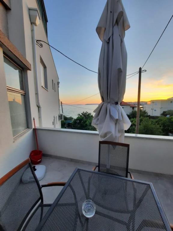 Hermoso apartamento limpio, totalmente equipado, con terraza, barbacoa y una maravillosa vista al mar. En el techo, otra terraza, hay una vista aún más hermosa del mar con tumbonas, sillas, una parrilla y un jacuzzi. El mar está a solo unos pasos del apartamento, hermoso color turquesa. La playa es de grava, pero también puedes encontrar arena blanca y conchas en el mar. Hogar Ivanka es muy amable, afectuoso, siempre dispuesto. Lo recomiendo tanto para familias pequeñas como para familias numerosas. Estamos satisfechos, definitivamente volveremos en algún momento.