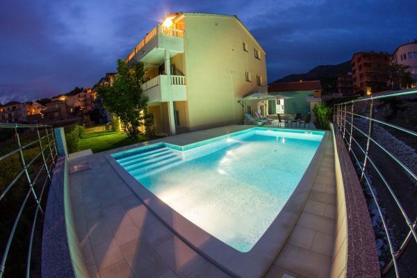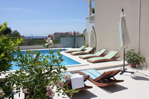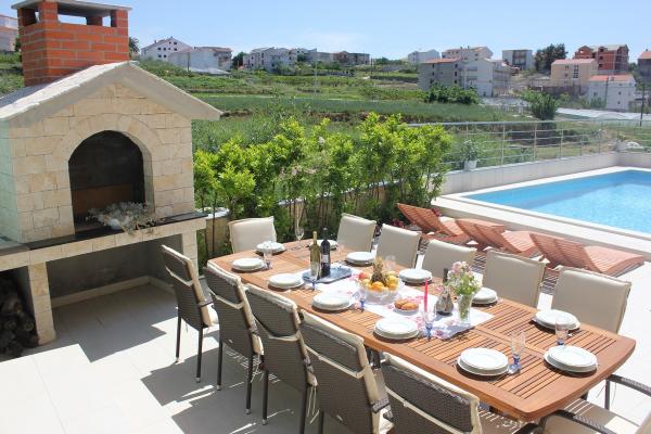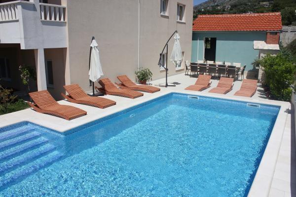 Casa con aire acondicionado Recientemente renovado con piscina, sauna, barbacoa y cocina al aire libre. La casa está situada cerca del hotel Le Meridien Lav, en un ambiente tranquilo, y son ideales para unas vacaciones familiares. Ofrecemos comodidad y conveniencia a precios razonables. La casa consta de 3 plantas con 6 dormitorios, cuarto de 4dnevni (hasta 2 camas supletorias), 4 cocinas, 6 baños, terraza y es apto para 4 personas 10.