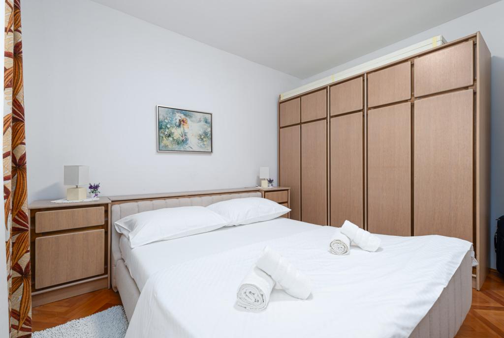 El apartamento está amueblado con gusto y puede alojar hasta cuatro personas. Consta de sala de estar, cocina totalmente equipada, mesa de comedor, un dormitorio doble con cama de matrimonio, un dormitorio con dos camas individuales con TV de pantalla plana y un baño. Delante del apartamento, en un ambiente muy agradable, hay una zona de estar. El precio de alquiler del apartamento incluye el uso de: ropa de cama, toallas, Wi-Fi y aire acondicionado.