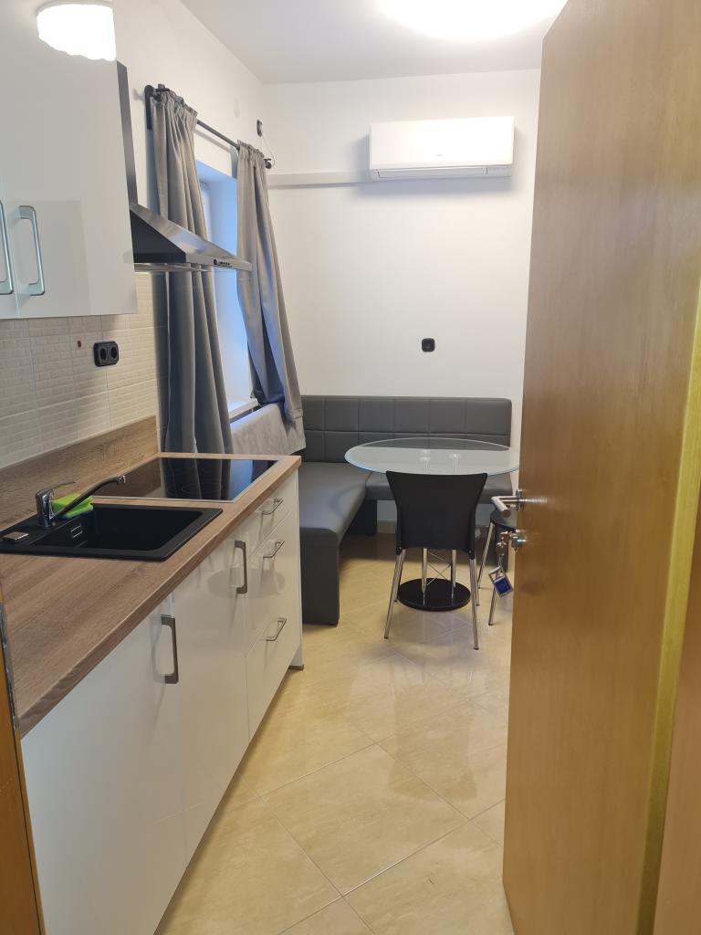 Apartamentos en casa particular cerca del mar y del centro. Los apartamentos están ubicados en la planta baja. Los apartamentos están completamente equipados de forma moderna. La instalación se encuentra a cinco minutos a pie de la playa. El apartamento tiene una gran terraza con barbacoa. El estacionamiento para autos está en un patio cercado.