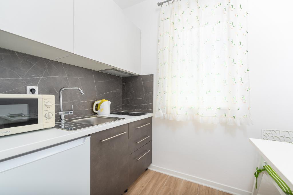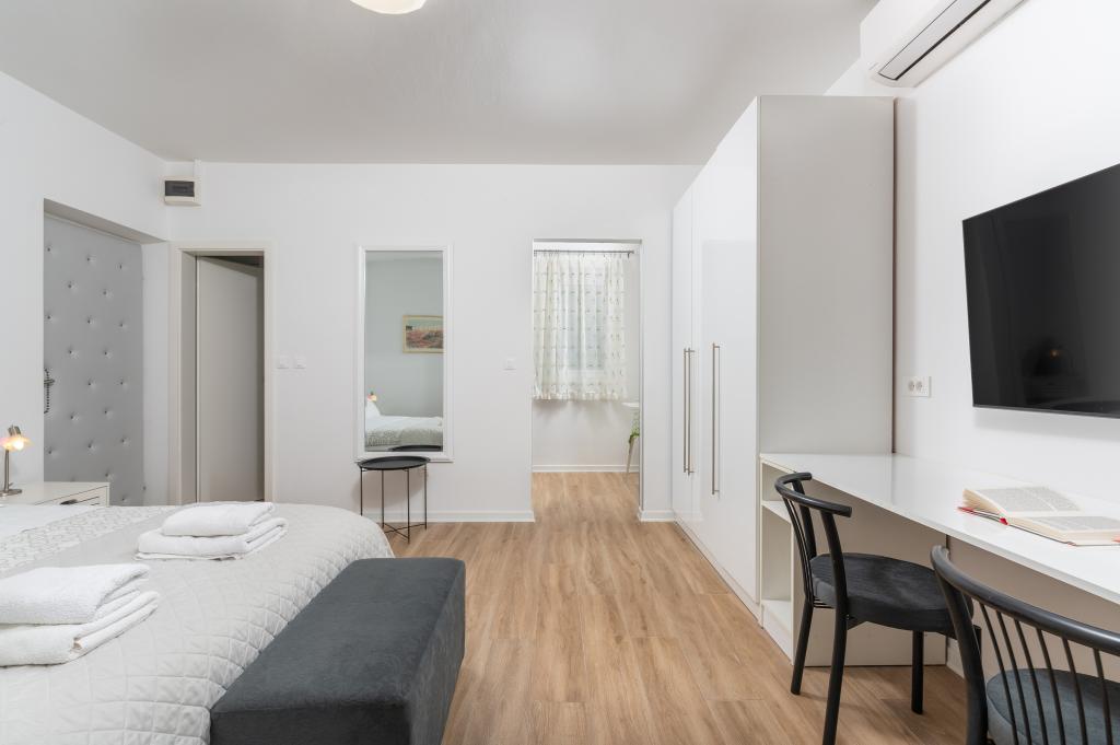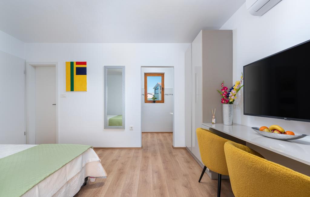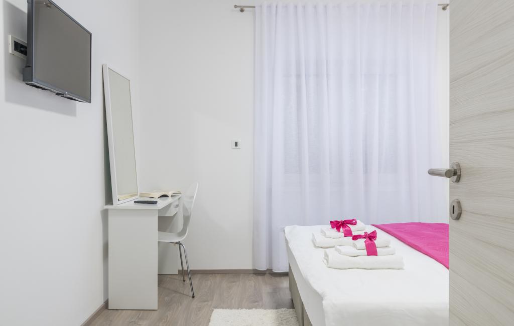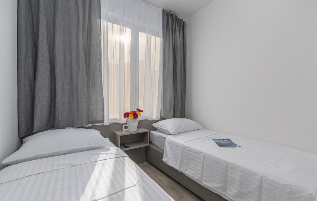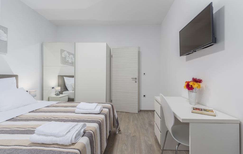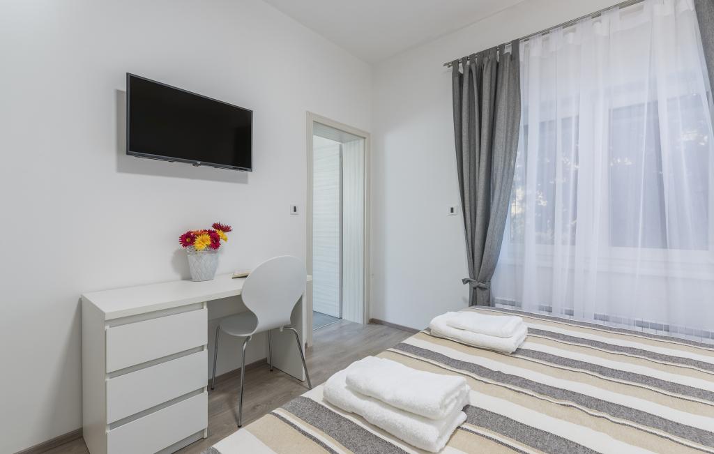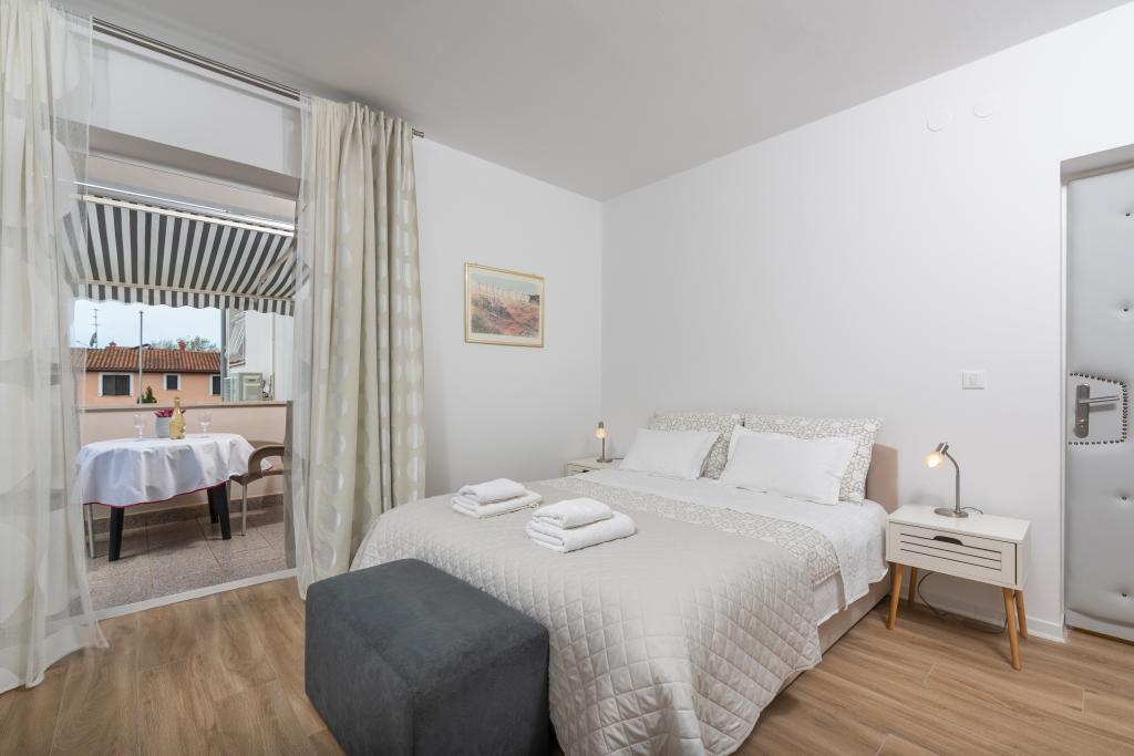 Nuestros apartamentos se encuentran en una hermosa y tranquila zona residencial, ideal para escapar del bullicio veraniego, pero a la vez cerca de todo. Un agradable paseo de 10 a 15 minutos le llevará a la hermosa playa de Borik o al animado centro histórico de Poreč. Hay un gran supermercado a solo 4 minutos a pie, ideal para familias.