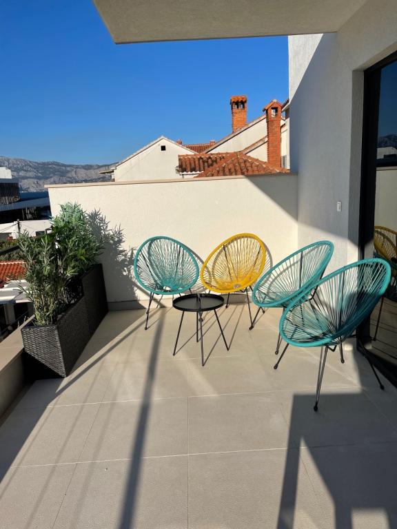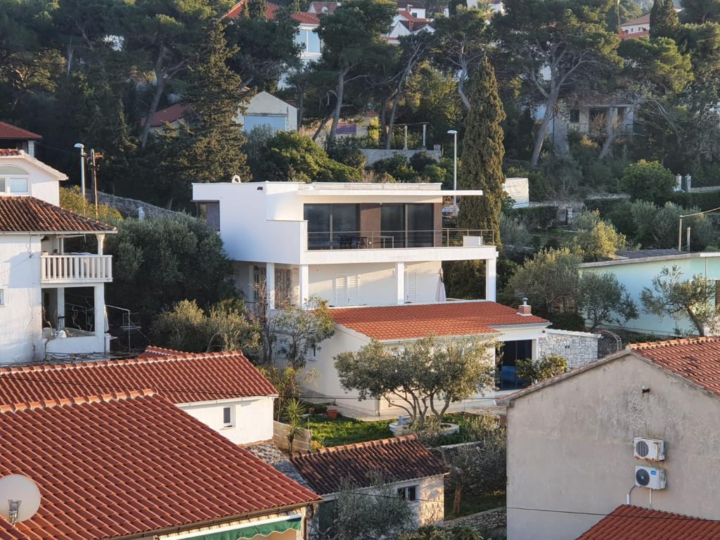 La casa en la que se encuentran los apartamentos se encuentra en una zona tranquila y atractiva del pueblo. Rodeado de un jardín y flores, y una amplia terraza cubierta ofrece una hermosa vista del mar. Hay una plaza de aparcamiento delante de la casa y una barbacoa en el patio. El mar está a sólo 80 m La playa más cercana es de arena. La bahía es tranquila, pero tienes que caminar 2-3 minutos hasta el centro de la ciudad.