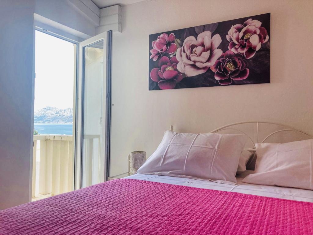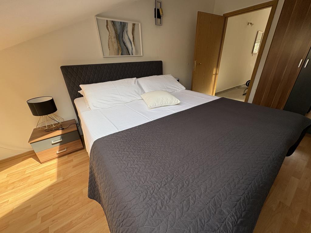 Apartamento 6 para 2 personas con una hermosa vista del mar, soleado y muy amplio, con tres habitaciones con camas dobles, salón con cama doble, dos cuartos de baño, ducha de hidromasaje, dos aparatos de aire acondicionado, cocina de inducción, lavavajillas, lavadora , cafetera, hervidor de agua, microondas y nevera. Terraza con chimenea, zona de barbacoa y terraza con vistas al mar, que tiene mesas y sillas separadas. TV está en la sala de estar, y se proporciona acceso inalámbrico a Internet. Está equipado con vajilla para preparar y servir alimentos y bebidas y los cubiertos en cantidades adecuadas. Se encuentra en el primer piso de la casa en el centro de la ciudad. Se encuentra cerca de la tienda de mar (40 m) (50 m), playas numerosas, restaurantes, bares y otros establecimientos de restauración. El precio incluye plaza de aparcamiento en frente de la casa, el uso de la embarcación en el puerto, ropa de cama y toallas, limpieza después de la salida y el uso de la cama de los niños si es necesario