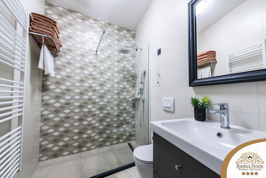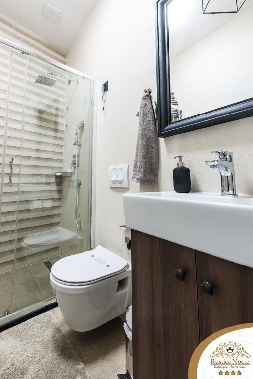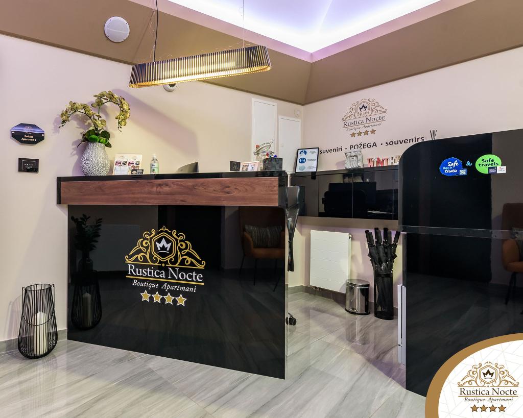 En pleno corazón de Eslavonia, al comienzo de la zona peatonal de Požega, los apartamentos Rustica Nocte Boutique son el lugar perfecto para unas vacaciones de ensueño. Para que sus vacaciones sean lo más agradables posible, nuestros modernos apartamentos le ofrecen un equipamiento de primera calidad, y destacamos especialmente el sistema de gestión inteligente de todo el apartamento, la conexión Wi-Fi de alta velocidad e Internet por cable e inalámbrica gratuitos, Camas king size con somier, cajas de seguridad digitales, televisores Ambilight ultra HD, receptores de TV de 50 pulgadas con Netflix, programas satelitales y locales e iluminación LED Ambilight en las ventanas, baños ventilados y calefaccionados y cocinas totalmente equipadas en cada uno de los apartamentos. Cada apartamento también contiene un mini bar con bebidas alcohólicas y no alcohólicas y aperitivos. Los apartamentos también cuentan con un rincón infantil con mesas, juguetes, libros para colorear y alfombras de juego. Con todo esto, podrás planificar tus vacaciones sin preocupaciones.