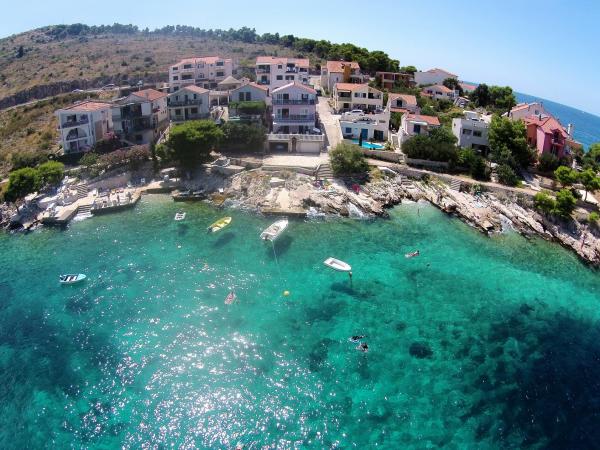 Atlas Apartments se encuentran en una casa privada cerca del tranquilo pueblo de Primosten Ella. Los apartamentos están al lado del mar. Los apartamentos son de nueva construcción año 2014a y nunca alquilado. Hay dos apartamentos modernos con aire acondicionado. Los apartamentos disponen de: cocina, sala de estar con un sofá cama, un baño y dos habitaciones con seis camas. Cada apartamento tiene una plaza de aparcamiento y una terraza con una vista magnífica del mar.