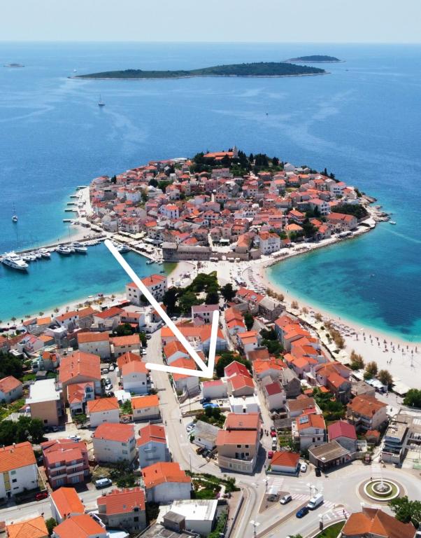 El moderno apartamento de dos plantas Miamare en Primosten está a 100 metros del centro de la ciudad y de la playa (1-2 minutos a pie) Consta de cocina, salón y aseo en la planta baja y dos dormitorios y un baño en la primera piso. Está equipado con tres aparatos de aire acondicionado y conexión a Internet. Se proporciona una plaza de aparcamiento gratuita frente al apartamento. Todas las instalaciones esenciales se encuentran en las inmediaciones a una distancia de menos de 100 m (tienda, farmacia, mercado, restaurantes, carnicería , oficina de correos...).