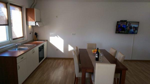 Habíamos alquilado dos apartamentos, los dos grandes. El primero estaba en el 1er piso y estaba en buenas condiciones y fue renovado hace aproximadamente cuatro años. Creo que la cocina es un poco pequeña para cocinar para cinco. Sólo dos platos de cocina. El balcón es hermoso, ideal para sentarse y quedarse con una mesa grande y suficientes sillas. Aquí tienes una buena vista del jardín y la piscina. El segundo fue alquilado en la planta baja por primera vez después de la renovación. El departamento es muy moderno. Y amueblado con gran sensibilidad para la óptica. Lo que es genial aquí Tiene una pared completa con armarios. Aquí no tienes absolutamente ningún problema con la ropa para guardar. La terraza tiene espacio suficiente y agradable para sentarse. La piscina es super grande, Estuvimos a finales de agosto y tuvimos la piscina. Excepto algunas excepciones exclusivamente para nosotros, Los niños podrían enfurecerse y hacer tonterías. Los propietarios son muy amables y serviciales. Ante condujo con nuestros hombres para mostrar las playas y las posibilidades de compras. La propina con el restaurante Amico en Privlaka fue buena, pero muy concurrida y ruidosa, la comida estaba bien. Una visita y paseo por la playa en Vir es muy recomendable. La playa directa, caminando es muy estrecha (arena). Nuestro favorito absoluto es la bahía lateral del zaton Holiday Resort. Aquí hay una sección nudista a la izquierda y el resto se mezcla con familias, parejas y todas las nacionalidades. Tuvimos un dia tormentoso Aquí estábamos en Nin y tener el kitesurfer Observado durante sus espectaculares saltos. Por último, hay que decir muy relajante y tranquilo. Las playas como dije casi toda la arena o grava mezclada con arena. Sólo para ser recomendado! Gracias Ante por todo.