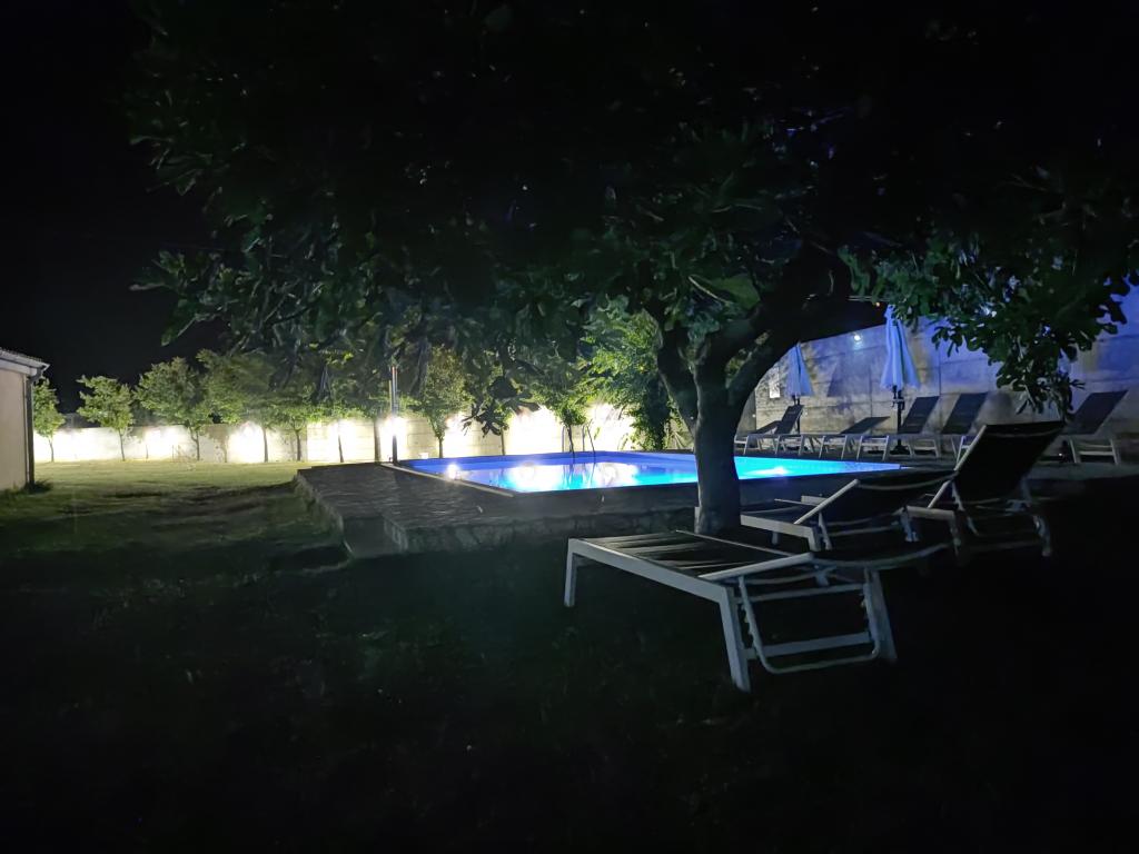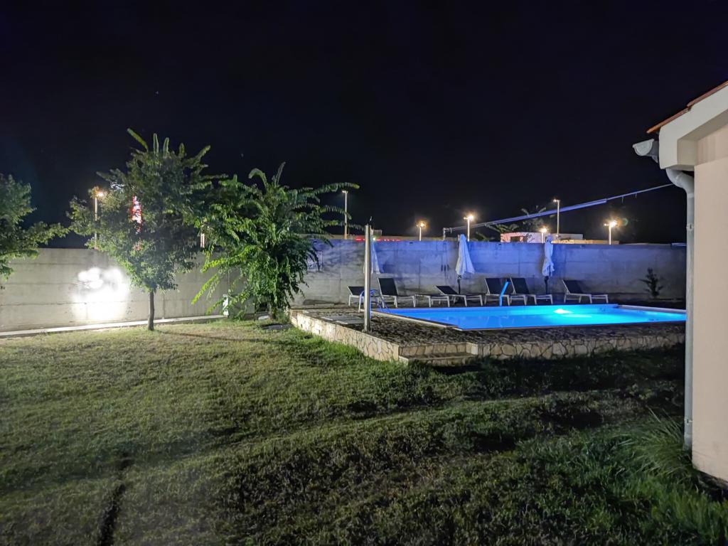 El complejo se encuentra en una península arenosa con playas de arena y aguas poco profundas, lo que resulta en aguas más cálidas para nadar. Las dos primeras playas están a 300 m, por lo que no es necesario usar coche. En un radio de 4 kilómetros, a lo largo de la península de Privlaka, con vientos de diversas direcciones, se puede encontrar un lugar tranquilo para nadar. El amplio y espacioso patio con césped es principalmente un área de juegos para niños y adultos. Piscina infinita. Aparcamiento seguro con techo rígido.