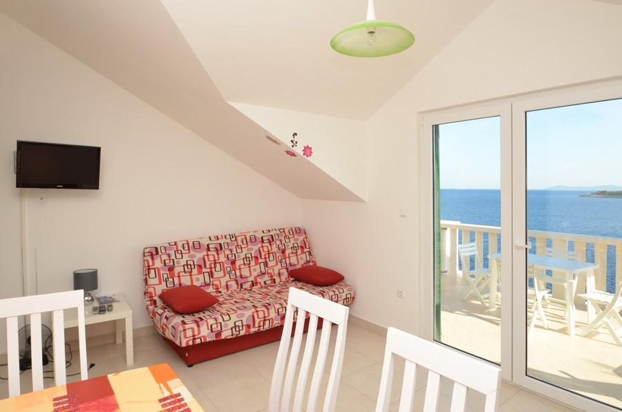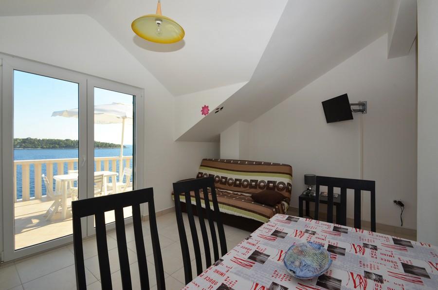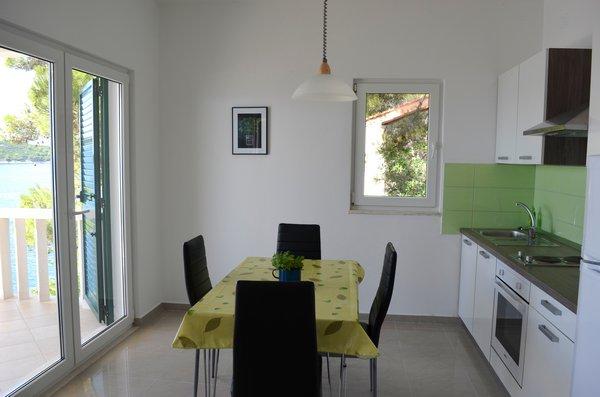 La casa está situada junto al mar en un lugar tranquilo. Los apartamentos son nuevos y bien equipados. En frente de la casa hay un amplio estacionamiento, gratuito y acogedor para todos nuestros huéspedes. Cada apartamento tiene su propia terraza con vistas al mar y los islotes. Hay dos playas privadas con sombrillas y tumbonas gratuitas cerca. Hay una escuela de buceo, escuela de vela, agencia de alquiler de botes, ciclomotores, canoas, varios restaurantes, hermosos senderos para caminatas y ciclismo.
