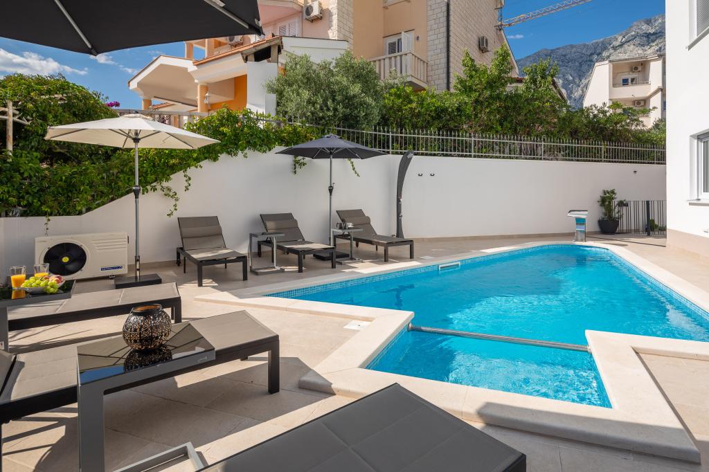 Le presentamos los apartamentos A&D Deluxe con piscina, cómodas unidades de alojamiento ubicadas a poca distancia del mar, a sólo 300 metros. Cada apartamento ofrece una combinación perfecta de confort y lujo. El apartamento A1, con 2 dormitorios, 2 baños y una amplia terraza, ofrece una vista parcial del mar y es un lugar ideal para relajarse en familias o grupos pequeños. Además, los huéspedes tienen acceso directo a la piscina, lo que les permite disfrutar de refrigerios y entretenimiento adicional. La suite A2, también con 2 dormitorios y 2 baños, también tiene acceso a la piscina, lo que permite a los huéspedes diversión y relajación adicionales. El apartamento A3, de un dormitorio y baño, también tiene acceso a la piscina y es ideal para parejas o familias pequeñas que buscan unas vacaciones relajantes cerca del mar. Todos los apartamentos están totalmente equipados, incluyendo cocinas, estacionamiento privado, aires acondicionados y televisores inteligentes, lo que garantiza comodidad y conveniencia durante su estadía. Disfrute del lujo de una piscina privada y la proximidad a hermosas playas en estos apartamentos.