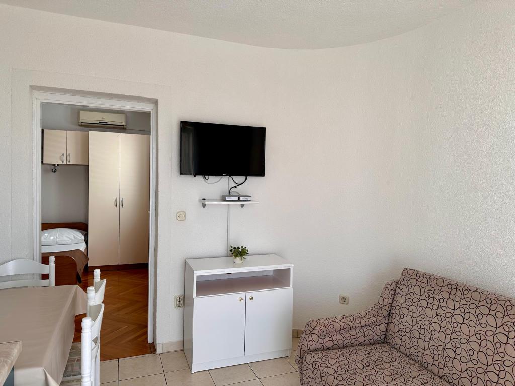 Los apartamentos Barać están situados en un entorno tranquilo, tienen una hermosa vista al mar y están a unos 150 metros del centro de la ciudad y de la larga playa de guijarros. En la casa ofrecemos apartamentos tipo estudio y apartamentos con un dormitorio independiente, de categoría tres estrellas. Todos los apartamentos disponen de aire acondicionado, baño independiente, cocina, televisión vía satélite e Internet inalámbrico. Las cocinas están equipadas con refrigerador y utensilios y vajilla estándar de cocina, existiendo también la posibilidad de utilizar una parrilla al aire libre. Una buena opción para todos aquellos que quieran alojarse en un entorno tranquilo, cerca de la playa de sus sueños.