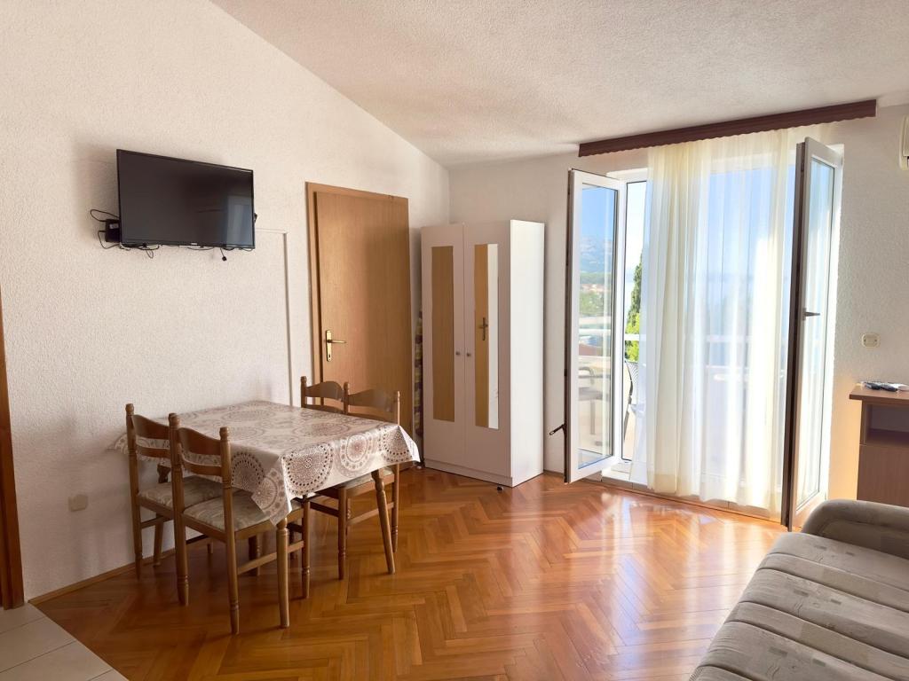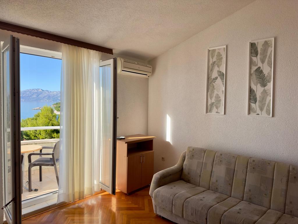 El apartamento 2 + 2 es muy cómodo. Tenemos todo lo que necesitas para ser feliz ... buen equipamiento y lo más importante hermosas vistas a la montaña y al mar. Admirar el amanecer y el atardecer mientras tomábamos vino en la terraza es lo que estábamos esperando ... Así que volvimos ... la misma habitación, la misma vista y grandes recuerdos. Los propietarios son muy amables y serviciales, las habitaciones son de un alto nivel de limpieza ... Todo está realmente ahí ... aparte del equipamiento estándar, hay toallas, secador de pelo, plancha, todo lo que le gustaría llevar con usted, pero no lugares ya en el coche.