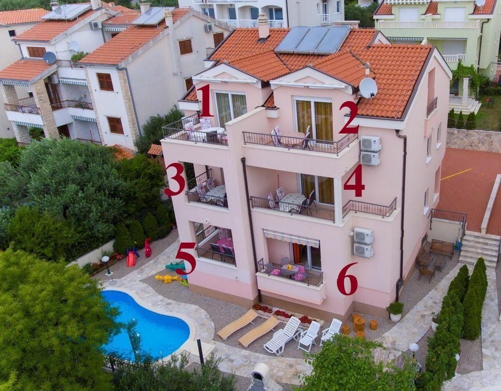 - Los apartamentos "Bojka" (calle "Obala 24 C") incluyen el uso de una piscina compartida y parrilla con mesa y bancos, cunas y comederos si es necesario, 1 estacionamiento/coche,