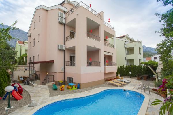APARTAMENTOS BOJKA: una casa nueva con piscina, con apartamentos de lujo ubicados en la ciudad de Promajna, en la calle Obala 24 C, en el centro de la ciudad, a unos 90 m de la playa principal. Además del alojamiento en apartamentos exclusivamente amueblados, también podrá utilizar la piscina al lado de la casa. Todas las cocinas están equipadas de forma moderna (nevera con congelador, cocina, horno, hervidor, lavavajillas...), todos los baños están equipados de forma moderna (plancha con mesa, lavadora, secador de pelo...). Hay conexión inalámbrica a internet gratuita en todos los apartamentos. Las etiquetas de la aplicación son: Bojka 1, 2, 3, 4, 5 y 6. Cada apartamento tiene un aparcamiento gratuito al lado de la casa. En el patio de la casa hay un asador para todos los huéspedes así como una mesa al lado del asador. Un ama de llaves que atiende a los huéspedes permanece en las instalaciones todo el tiempo.