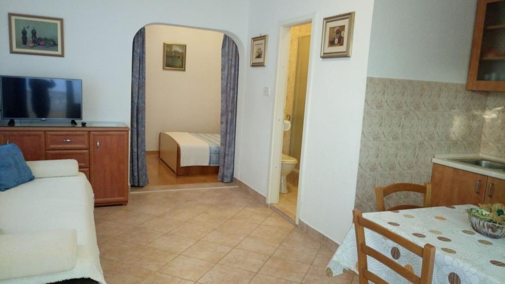 Los apartamentos MIRA constan de 2 estudios (para 2-4 personas) y 2 apartamentos (para 4-5 personas). Están ubicados en la planta baja con estacionamiento frente al apartamento. Se encuentran a 250-300 m de la playa principal.Además del equipamiento estándar completo con aire acondicionado y acceso ilimitado a la red WiFi, todos los estudios y apartamentos disponen de horno microondas y lavadora. El apartamento estudio A4 también está equipado con lavavajillas. Los apartamentos tipo estudio tienen un dormitorio separado del salón por una cortina. Los apartamentos A4 y A4+1 tienen 2 dormitorios. El apartamento A4+1 (ID71792) tiene 2 baños y el apartamento A4 (ID71793) tiene 1 baño + aseo.