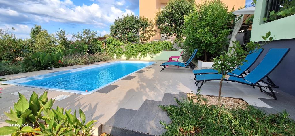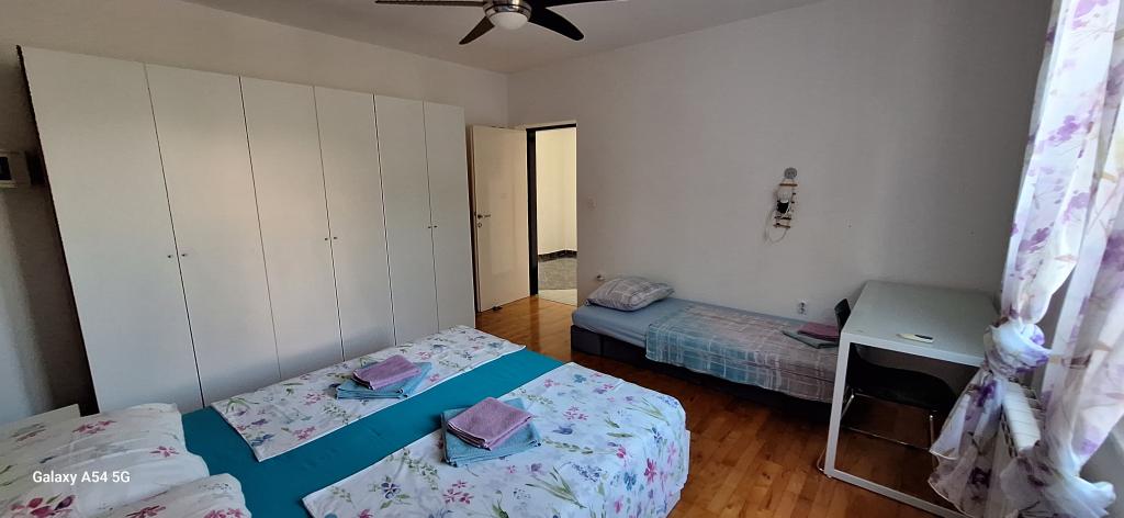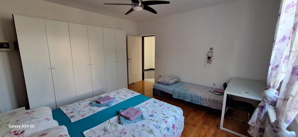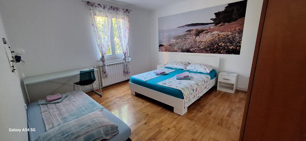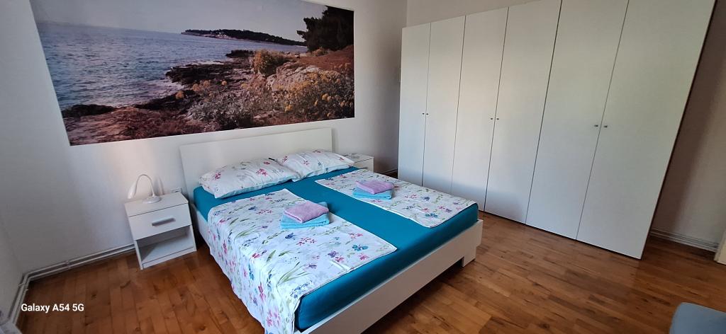 Descubra el auténtico lujo en nuestro Art Apartment en Pula, ubicado en la hermosa Istria. Este espacioso apartamento tiene capacidad para 6 personas en 100 m² de espacio habitable. Consta de 2 dormitorios y 2 baños, diseñados para su comodidad y relajación. Planta baja de 100 m² + balcón de 29 m² + patio de 600 m² con cama elástica. Los huéspedes tienen acceso a cocina, comedor, sala de estar, pasillo, 2 dormitorios con cama doble y una cama supletoria en cada habitación. Amplio baño con bañera. Pequeño baño con ducha. Amplia terraza de 20 m². Vistas al bosque.