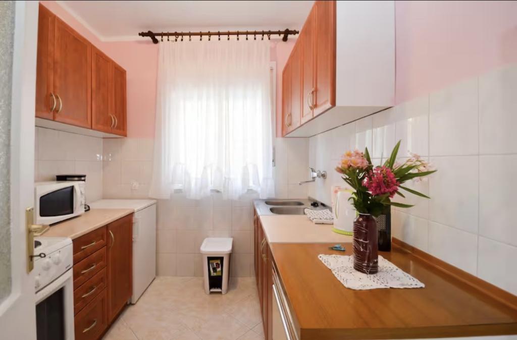 El estudio "Desiree" se encuentra en una zona tranquila y verde de Pula. Tiene una superficie de 45 m² y se encuentra en la planta baja de una casa familiar con un amplio patio y entrada independiente. Es amplio, luminoso y cómodo, y consta de un dormitorio, cocina, salón, pasillo, baño y terraza. Dispone de TV, aire acondicionado y wifi gratuito. La cocina está equipada con todos los electrodomésticos necesarios, como nevera, congelador, horno, microondas, cafetera, hervidor eléctrico, cubertería y vajilla, lo que le permitirá preparar deliciosas comidas durante su estancia. En el jardín frente al estudio podrá relajarse y disfrutar de la tranquilidad del entorno rodeado de vegetación. El estudio cuenta con una cómoda cama doble de 140 x 200 cm. Hay aparcamiento gratuito dentro de la casa, y también se puede aparcar en el aparcamiento público frente a la casa sin coste adicional. Una gran ventaja de este alojamiento es la proximidad del centro de la ciudad de Pula y del anfiteatro Arena, al que se puede llegar a pie en 20 minutos.