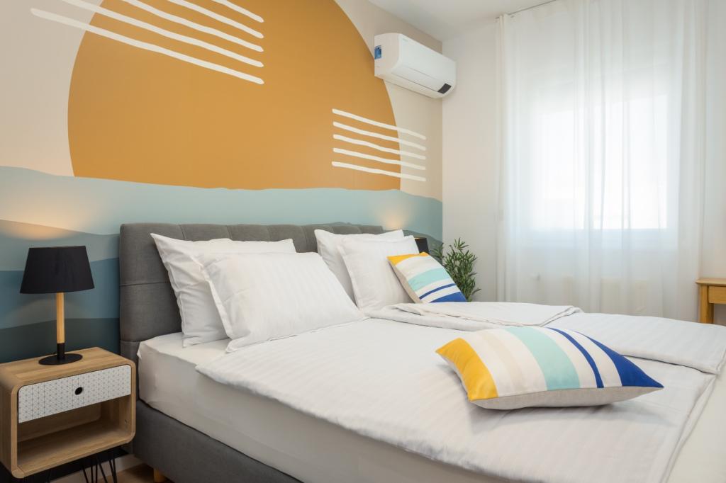 Apartamento totalmente equipado y moderno en un edificio nuevo con aparcamiento privado. El apartamento consta de tres dormitorios, salón con TV grande, cocina totalmente equipada, dos baños y terraza. En dos dormitorios hay camas dobles muy cómodas de 180x200 cm y en el tercer dormitorio hay dos camas individuales de 90x200 cm. El mobiliario está hecho a medida y todo el equipamiento es nuevo. Destacamos: lavadora, lavavajillas, horno, frigorífico grande con congelador, cafetera nespresso, microondas,. La cocina dispone de todos los utensilios para cocinar, así como todo tipo de vajilla, vasos y cubiertos. El apartamento está situado en una zona tranquila de la ciudad, cerca de las playas y del centro de la ciudad. El aeropuerto está muy cerca, a sólo diez minutos en coche, así como la estación de autobuses.