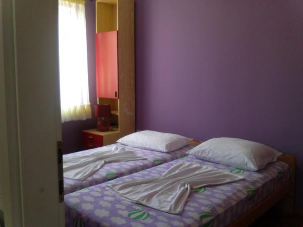 Casa nueva con 3 apartamentos Sasha de pie al final de la carretera, en una zona residencial y turística de Brijuni. Tiendas, restaurante, playa de arena de 400 m, el centro 1 km, Pula 4 kilómetros. Cercado, a unos 500 metros cuadrados de terreno con plantas mediterráneas, árboles de kiwi, flores y arbustos. Para compartir en el jardín: 2 tumbonas, patio con mesa de madera / bancos de madera, barbacoa. Aparcamiento en la calle cerca de la casa. Balcón (aprox 17 m²) con muebles y vistas al mar. Pisos. TV vía satélite. Calefacción central de gasoil. Lavadora por el propietario (de pago). Nota: El propietario vive en el suelo. Gastos a pagar en destino: Tasa turística. Lave la ropa de cama (cambio cada 7 días incluido) .we ofrecer una pequeña toalla cayó personal. Trae toallas ovelike. Fianza 150 € Cuna 20 € por habitación (a petición). No se permiten mascotas.