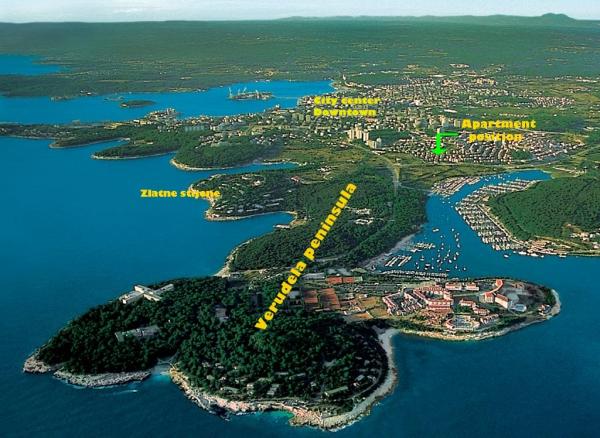 Bienvenido a nuestro confortable apartamento en una nueva! Está situado en una ubicación exclusiva en Pula - cerca del pueblo turístico Verudela. Descripción de la situación es muy tranquila y sin ruido - ideal para la relajación. El alojamiento consta de un dormitorio con dos (2) camas que se pueden unir en una cama doble, una sala de estar con sofá cama (dos camas de tamaño normal de 200x90), cocina equipada, comedor, baño, terraza / balcón con asientos al aire libre. Delante de la terraza es un gran jardín con olivos y una barbacoa. En las proximidades (<300 m) son: supermercados, estación de autobuses, restaurantes, puerto deportivo, centro de tenis, iglesia, farmacia, así como muchas instalaciones turísticas en la aldea Verudela. El centro de Pula anfiteatro se puede llegar a pie o en autobús (7 min). El coche durante 10 minutos en el parque Kamenjak con hermosas aguas cristalinas y playas. Viaje de un día se puede visitar el Parque Nacional de Brijuni o Venecia. Creemos que va a pasar un odnor agradables con nosotros.