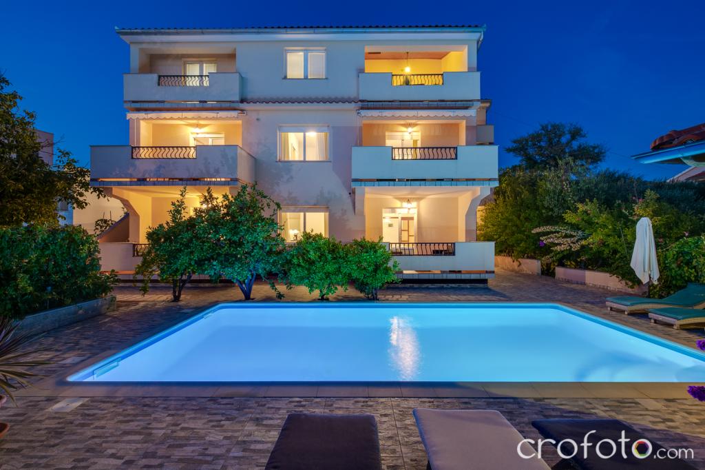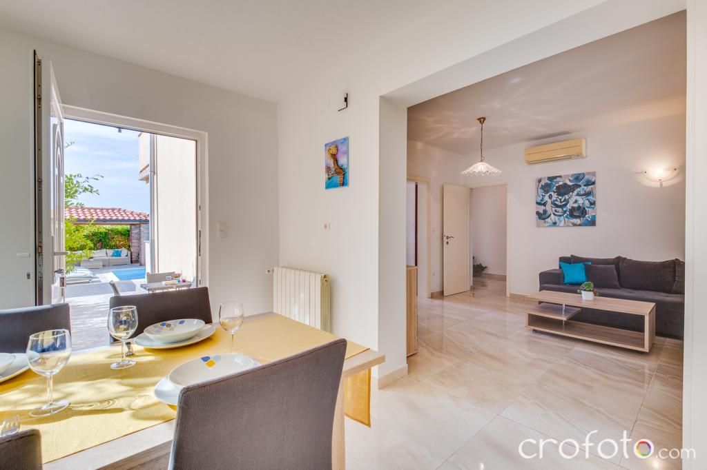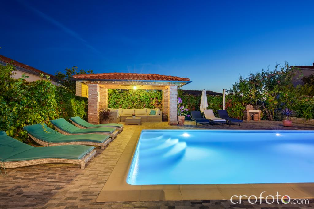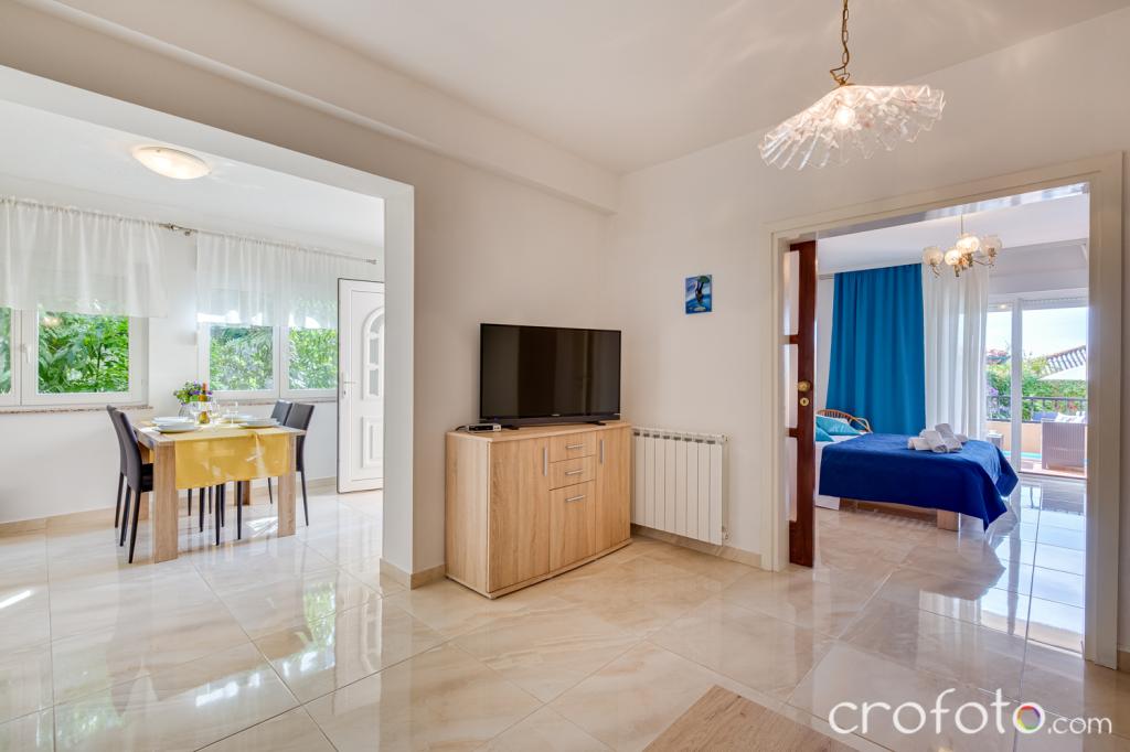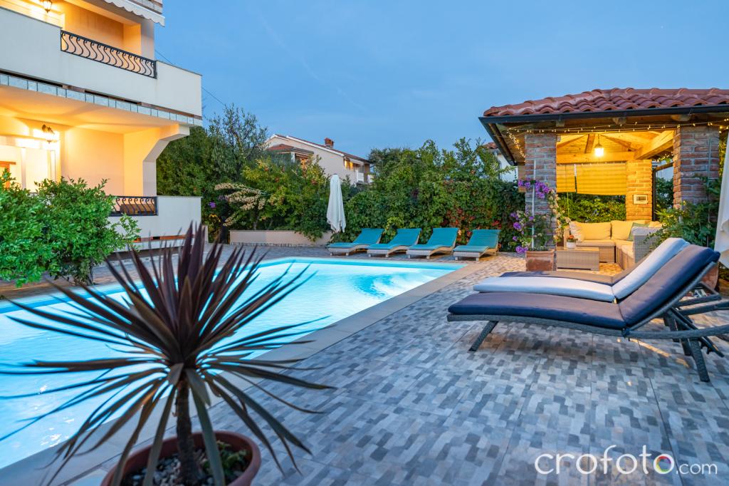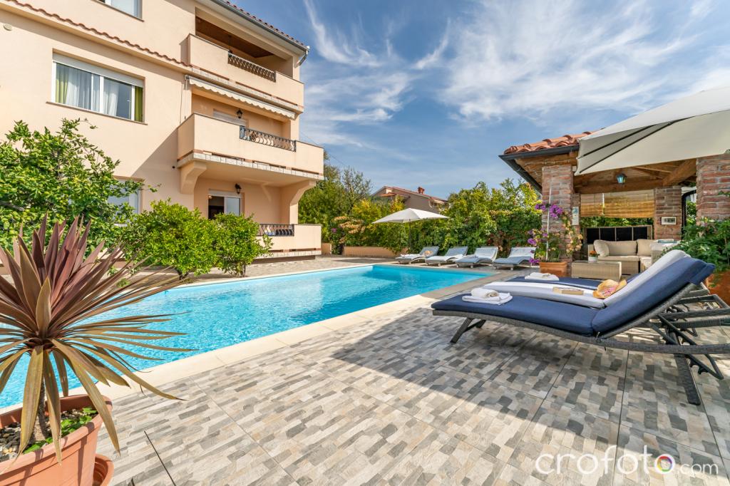 Los apartamentos JuriĆ gozan de una ubicación excelente, cerca del centro y de los restaurantes más prestigiosos, junto al mar y al parque. Su principal atractivo es su ubicación tranquila, lejos de las multitudes, con piscina y jardín privados, con un cenador independiente con chimenea y una mesa grande, que ponemos a disposición de nuestros huéspedes. La zona de la piscina, agradablemente diseñada y amueblada, ofrece cómodos asientos a la sombra de un acogedor cenador y cómodas tumbonas, rodeada de exuberante vegetación. En el jardín, olivos, hierbas mediterráneas, plantas ornamentales y flores crean un ambiente especial. El ambiente es muy agradable, ideal para unas vacaciones tranquilas y relajantes.