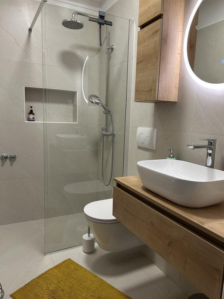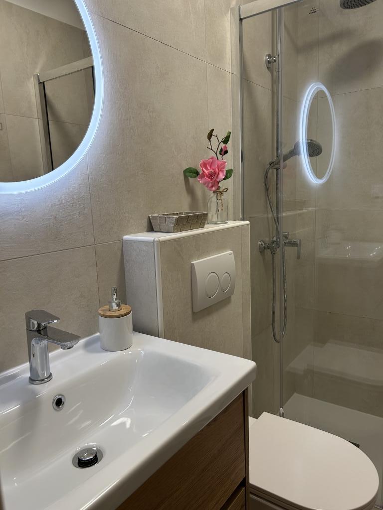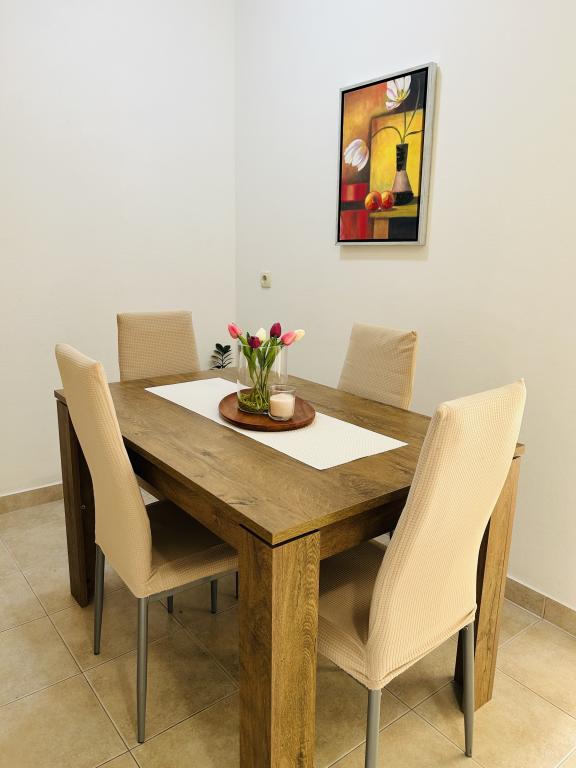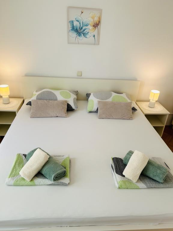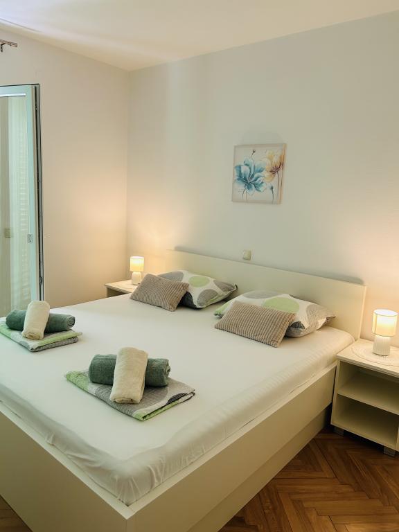 Apartamentos modernamente equipados en un entorno tranquilo. Los apartamentos están ubicados en la planta baja y en el primer piso. Disponen de salón, habitaciones con cama de matrimonio, cocina con todos los accesorios necesarios, baño y balcón, y wifi gratuito. En el ámbito de la instalación hay aparcamiento gratuito, y la posibilidad de utilizar una barbacoa. Una tienda de comestibles, una cafetería y una peluquería se encuentran a 300 metros del edificio, y otras instalaciones como un restaurante, ambulatorio, farmacia, etc. están a 5 minutos en coche. La playa de guijarros más cercana está a 700 metros y, si aún decide explorar un poco más, la península de Frkanj, que está llena de calas y playas, se encuentra a 5 minutos en coche. El casco antiguo de Rab se encuentra a 20 minutos a pie junto al mar oa 5 minutos en coche.
