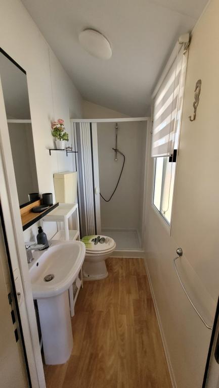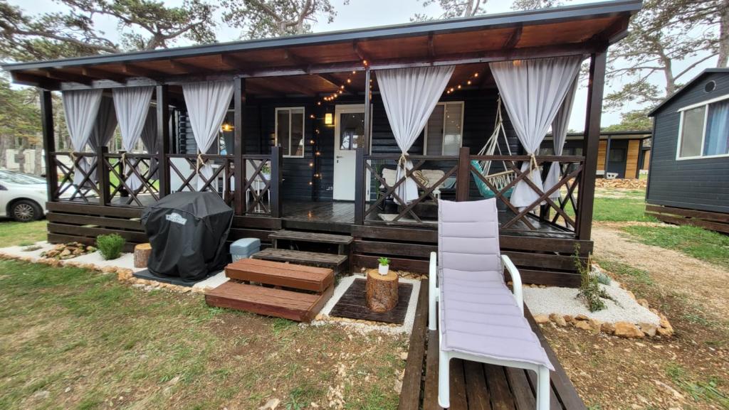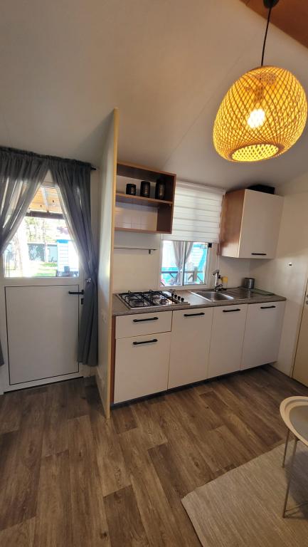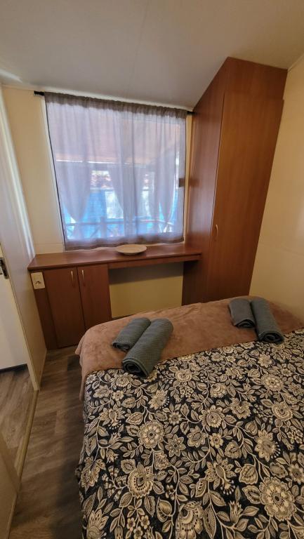 La casa móvil NALANI de dos habitaciones está ubicada en Camp Planik (24 m2) y cuenta con 5 camas y una cuna de viaje para bebés. Una habitación tiene una cama de matrimonio y la otra tiene dos camas individuales y una litera. El baño dispone de secador de pelo, toallas y jabón de manos. La cocina dispone de fogones, nevera grande, hervidor de agua, cafetera y horno microondas. En el salón podrás disfrutar de la TV plana y refrescarte con el aire acondicionado. A la entrada hay una gran terraza cubierta (20 m2) con mesa de comedor, barbacoa y zona de descanso. Detrás de la casa móvil hay plaza de aparcamiento gratuita para 1 coche. ¡Se admiten mascotas por un recargo!