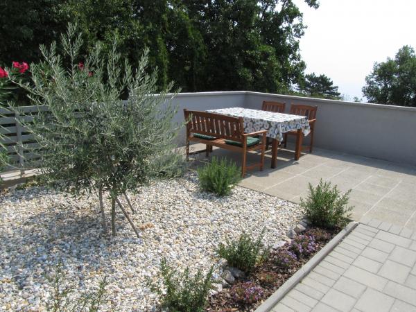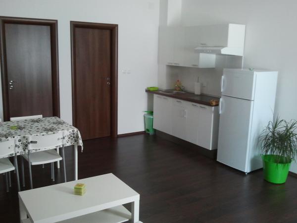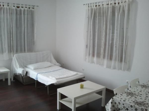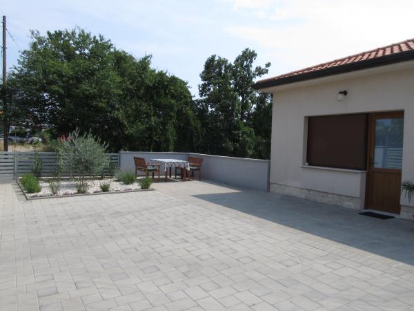 Nuevos apartamentos en una zona tranquila con vistas al mar y parking privado. Cerca de restaurantes, tiendas, cajeros automáticos y gasolineras. Los apartamentos están situados en la planta baja con entrada independiente. Constan de un dormitorio con una cama doble, un baño y una amplia sala de estar con cocina, comedor y sala de estar. En el salón hay una posibilidad de una cama supletoria para dos personas. Los apartamentos están a 7-10 minutos en coche de la playa ya 5 minutos de la autopista.