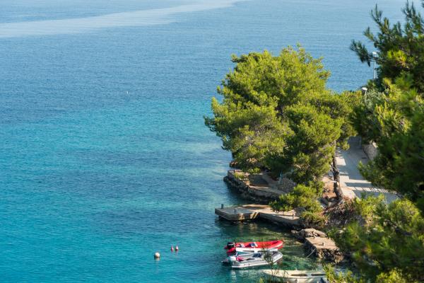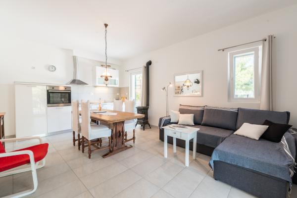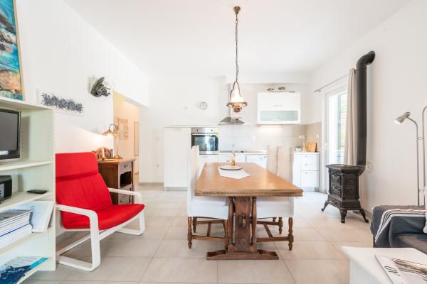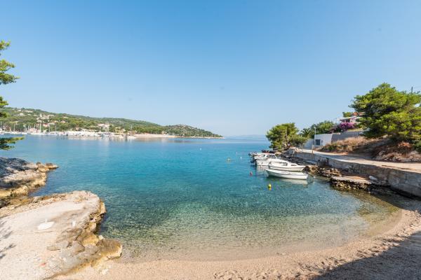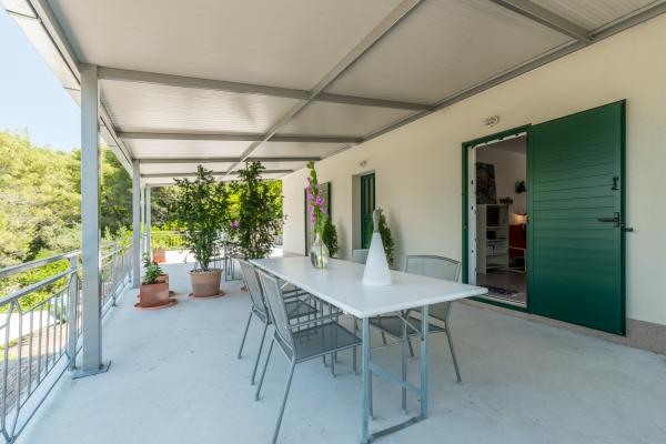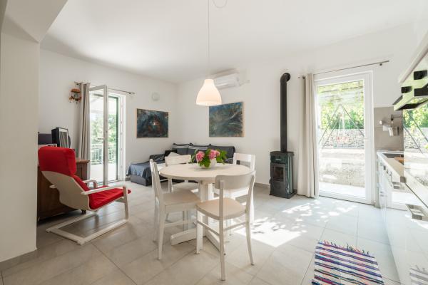 modernos apartamentos con terraza y vistas al mar, situado junto al mar en una zona tranquila de la bahía de Rogac en la isla de Solta totalmente equipada y. Los apartamentos constan de una sala de estar con cocina, dos dormitorios y un baño. Las aguas cristalinas del apartamento es de unos 50 metros.