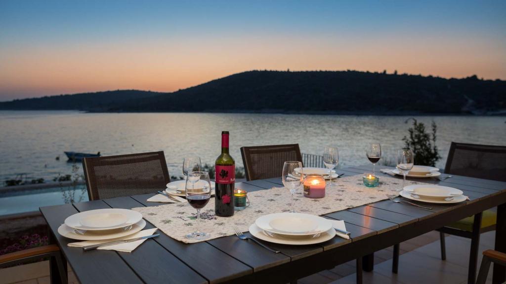 Villa CapeCarol se encuentra en el corazón de la soleada Dalmacia, en la localidad turística de Kanica. Esta moderna villa se encuentra justo al lado de la costa y ofrece una magnífica vista panorámica del mar cristalino y la naturaleza virgen que lo rodea. La hermosa villa CapeCarol con una superficie habitable de 310 m2 ofrece a sus huéspedes la privacidad de una estancia en apartamentos de tres plantas totalmente equipados. Tanto el exterior como el interior de la casa se caracterizan por un estilo limpio y moderno que le da a la villa un ambiente natural y agradable. Cada apartamento de 95m2 tiene un gran salón y cocina, 2 dormitorios (1 con cama de matrimonio y 1 con camas separadas) y 2 baños. Cada apartamento tiene una gran terraza con una hermosa vista al mar. El uso exclusivo de la piscina (15 m2) y el patio delantero/terraza está disponible con el alquiler del apartamento SeaCarol en la planta baja. La villa dispone de un total de 3 plazas de aparcamiento privado, 1 plaza para cada apartamento. Es posible amarrar un barco más pequeño.
