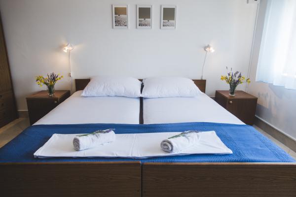 Los apartamentos Maslina se encuentran en una casa familiar, totalmente equipada, con vistas al mar y la posibilidad de utilizar la barbacoa. El patio está decorado con un vívido jardín lleno de hierbas mediterráneas (higos, aceitunas, romero, lavanda, vides de uva ...) dominadas por olivos de cientos de años. Los apartamentos tienen aire acondicionado y la distancia al mar es de sólo 70 metros. En las inmediaciones del edificio hay un aparcamiento propio. El apartamento al sur consta de dos dormitorios, cocinas totalmente equipadas, baños y amplias terrazas con vistas al mar sin obstáculos. El apartamento norte consta de un hall de entrada, habitaciones, cocinas totalmente equipadas, baños y terrazas más pequeñas con vistas al mar. Ofrecemos la posibilidad de atar la nave con cadáver. Regálate unas vacaciones en un hermoso entorno, disfrutando del mar azul claro y las hermosas puestas de sol.