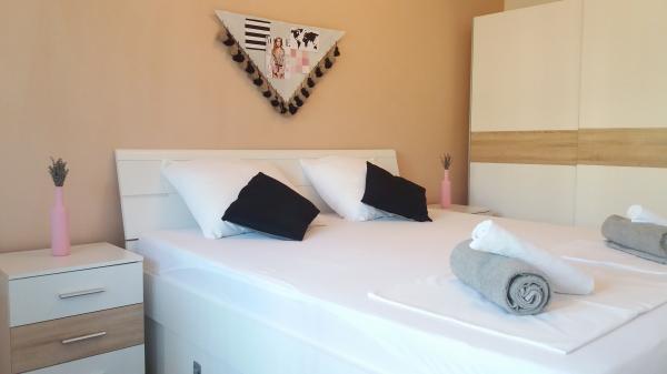 Rovanjska es un lugar turístico tranquila, ideal para el descanso y la relajación. Se encuentra al pie del Velebit y hermoso con aguas azules del mar de Novigrad. Los apartamentos están situados a 200 m de la playa, a 28 km del aeropuerto. Modric Cueva Cueva-riqueza se encuentra al pie del Velebit, y la iglesia de St .. George en el lugar es una joya de la arquitectura. Muy cerca se encuentra el Parque Nacional de Paklenica 8 km, Parque Nacional de los Lagos de Plitvice 95 kilometros, el Parque Nacional de Krka, a una distancia de 85 km. Desde la terraza se puede ver una hermosa puesta de sol.