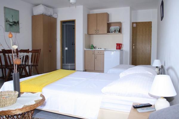 Estudios en Rovanjska, viniendo por la carretera de Maslenica. Distancia del mar 50 metros. Distancia desde 20 metros del restaurante. La estación de autobuses sobre la casa. Cada apartamento tiene una gran terraza con vistas al mar. Paklenica alrededores NP, Zadar, Starigrad. Contenido adicional: rafting, kayaking en Zrmanja, senderismo, escalada ...