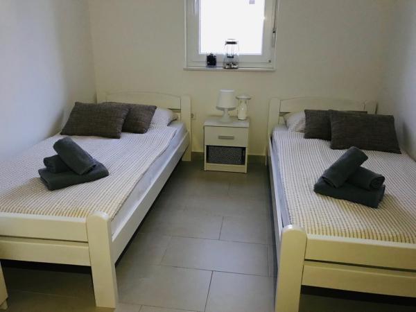 Hermosa Rovanjska está situado en la bahía en el extremo del canal de Velebit, cerca de Zadar. La proximidad de Velebit enriquece este lugar sus parques, cuevas, caminos y senderos para bicicletas. La riqueza de la cueva Modric al pie del Velebit, y la iglesia de St .. George en el corazón de la ciudad es la antigua arquitectura religiosa croata. Muy cerca se encuentra el Parque Nacional de Paklenica 8 km, Parque Nacional de los Lagos de Plitvice alrededor de 95 km, y el Parque Nacional de Krka en la distancia es de unos 85 km. Los apartamentos están situados a 200 metros de la estación de autobuses, a 400 metros de la playa, a 30 km del aeropuerto de puerto y ferry de Zadar. La terraza ofrece una vista impresionante del mar y sobre todo la hermosa puesta de sol. Los apartamentos son modernos y totalmente equipados.