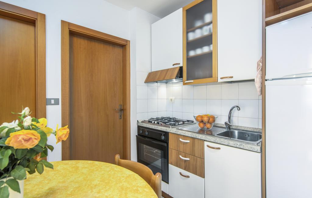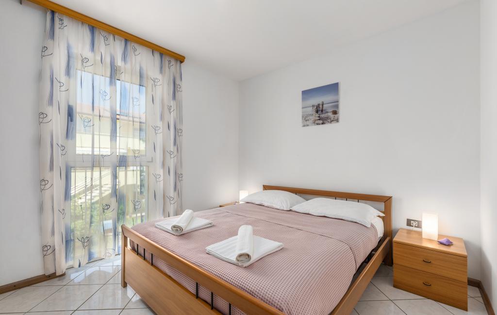 El apartamento se encuentra a solo 400 m del mar (5 minutos a pie) y a 20 minutos a pie del centro de la ciudad (800 m). Se encuentra en la primera planta del edificio y consta de dos habitaciones dobles: una con cama de matrimonio y la otra con dos camas individuales. La cocina, el comedor y el salón tienen acceso a un hermoso balcón con vistas a la vegetación y a los alrededores. La cocina está totalmente equipada: 3 placas de gas, 1 placa eléctrica, tostadora, horno y hervidor de agua. El salón cuenta con TV vía satélite y aire acondicionado. El baño incluye ducha, lavadora y bidé. Hay aparcamiento frente al edificio (con un suplemento de 7 euros al día). El edificio cuenta con gimnasio y pilates. Este apartamento le ofrece una estancia relajante y agradable junto a las hermosas playas de Rovinj, donde prácticamente no tendrá que usar el coche. ¡Estamos a su disposición para cualquier consulta!