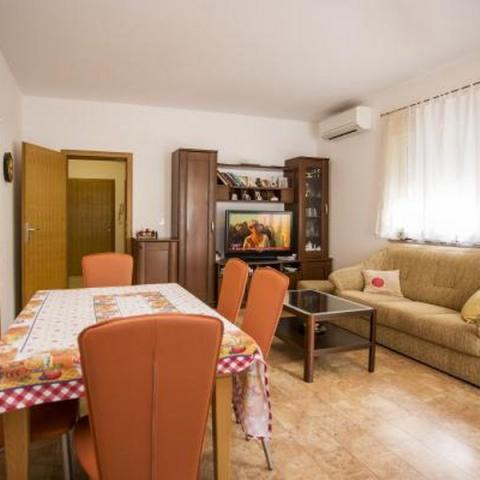 Cómodo apartamento, ordenada de 70 m2 en una zona tranquila de la ciudad, a 15 minutos a pie del centro de la ciudad. El apartamento tiene una cocina, salón, dos dormitorios, baño y terraza en el lado soleado de vida. Desde la terraza hay una comunicación con un jardín donde hay una mesa con sillas y una chimenea en uso. El apartamento está equipado con aire acondicionado y tiene acceso a Internet. Aparcamiento gratuito. Tienda, farmacia, peluquería y salón de belleza situado a 50 m. Los centros comerciales, a 1 km. Distancia del mar 900 m. El apartamento tiene una capacidad para 4 personas, pero hay una cama supletoria en la sala de estar para un niño. Ven a pasar el verano en la memoria de la hermosa Rovinj!