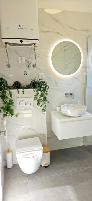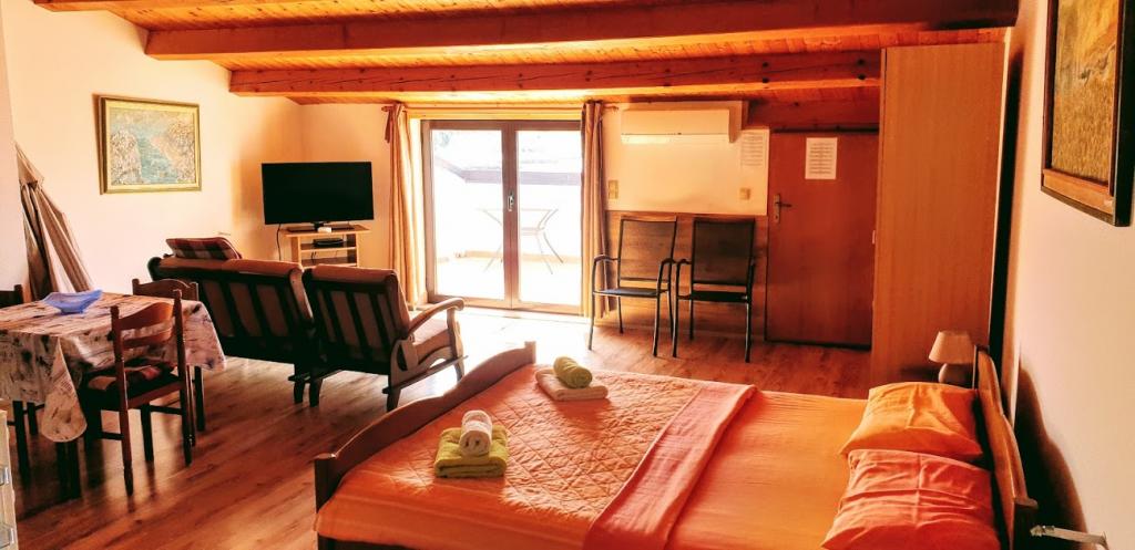 La ubicacion es fantastica. Para alimentos básicos, Konzum está a 400 m, cerca de un restaurante y una taberna, y lo más importante es que la playa está al otro lado de la calle. En la playa un gran bar. La playa es de guijarros y buena para los niños. Los jefes son personas maravillosas, hospitalarias y razonables. El aparcamiento está enfrente del apartamento. Se encuentra a unos 1,5 km del centro caminando junto al mar. ¡Solo tengo palabras de elogio!