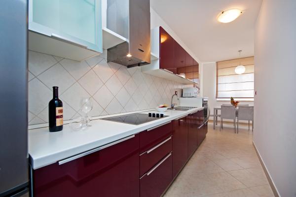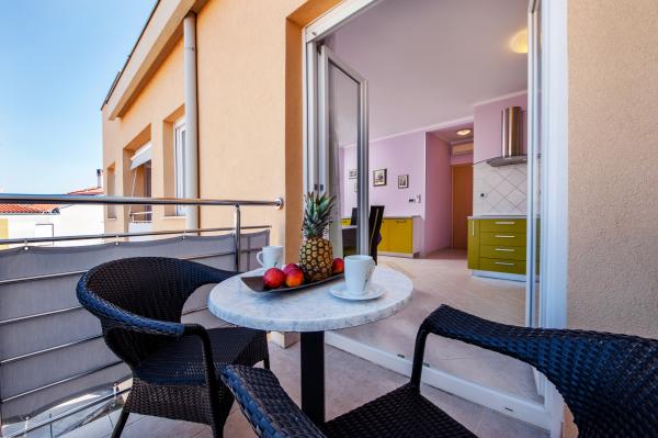 Modernos apartamentos situados en la entrada de Rovinj. Se tarda 15 minutos a pie del centro de la ciudad ya la misma distancia de la playa. Cada apartamento tiene su propia plaza de aparcamiento. apartamento más pequeño (A2) se encuentra en el primer piso y tiene capacidad para 4 personas (2 de 2). Es una habitación con una cama doble, baño y cocina y sala de estar con sofá cama. Desde la cocina se tiene acceso al balcón. Tiene un aire acondicionado y microondas. En el segundo piso es un apartamento grande (A6), con capacidad para 8 personas (6 2). Contiene 3 dormitorios, dos de ellos con cama de matrimonio y otra con litera. Además, la sala de estar tiene un sofá cama y dos baños y dos balcones. A su disposición dos aparatos de aire acondicionado y microondas.
