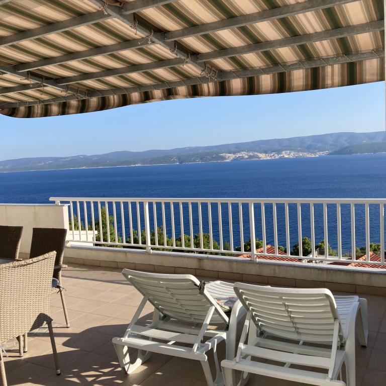 Estuvimos con los niños en el ático de terciopelo, que es enorme, nos encantó que uno de los dormitorios tuviera su propio baño independiente y hubiera otro baño y un pequeño aseo, que está genial para una familia numerosa. La vista desde la terraza de Brač y las islas es realmente impresionante, un apartamento increíble bien equipado con todo lo que necesita. Pasamos la mayor parte del tiempo en la terraza porque tiene columpio y tumbonas y estamos deseando volver el año que viene, lo recomendamos de todo corazón a todo el que quiera descansar y disfrutar.