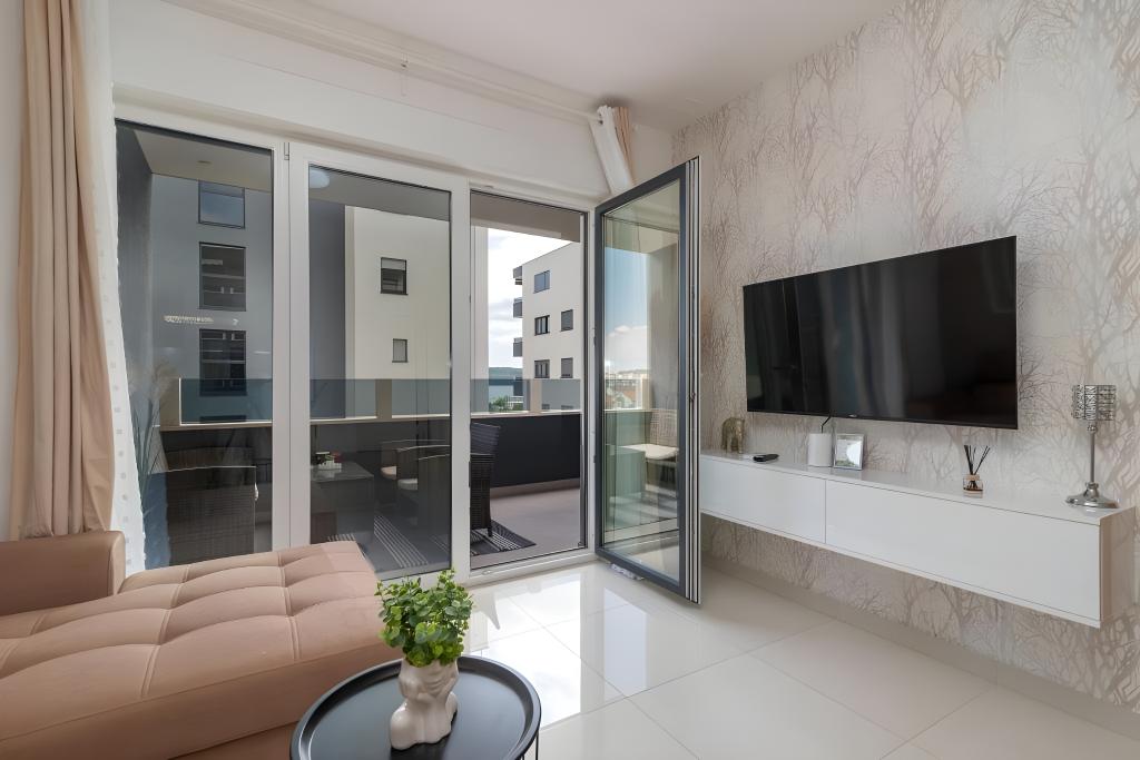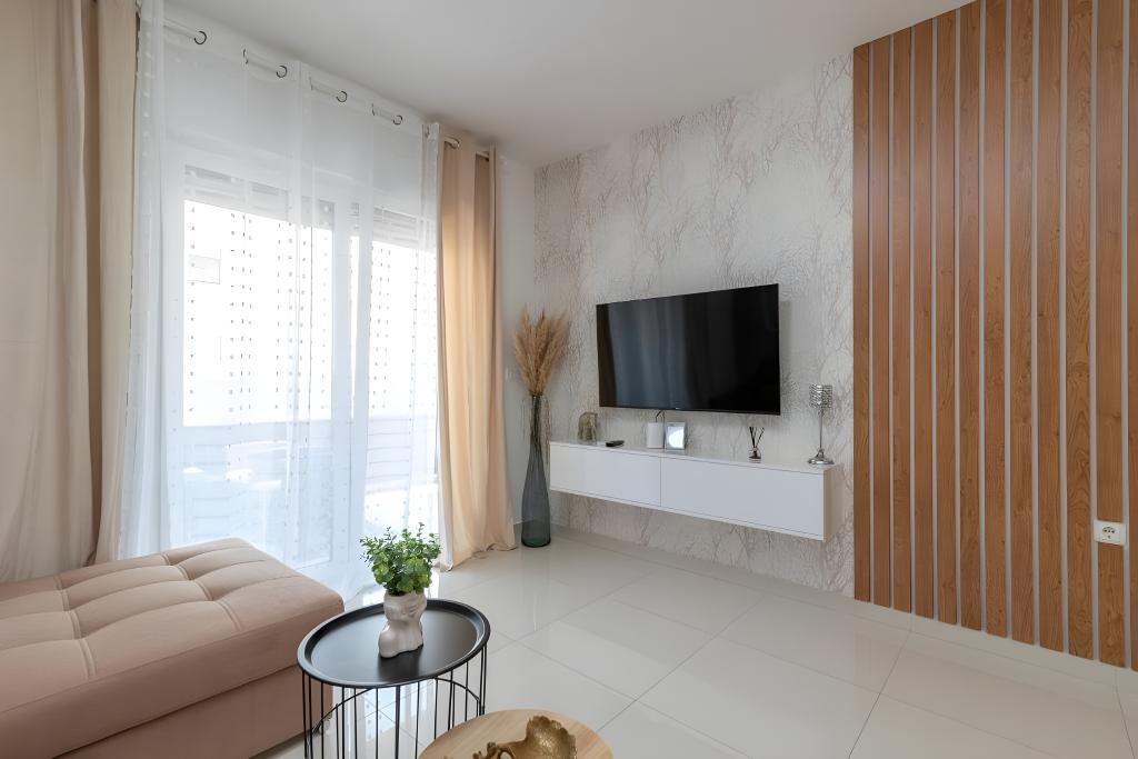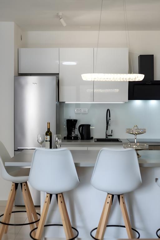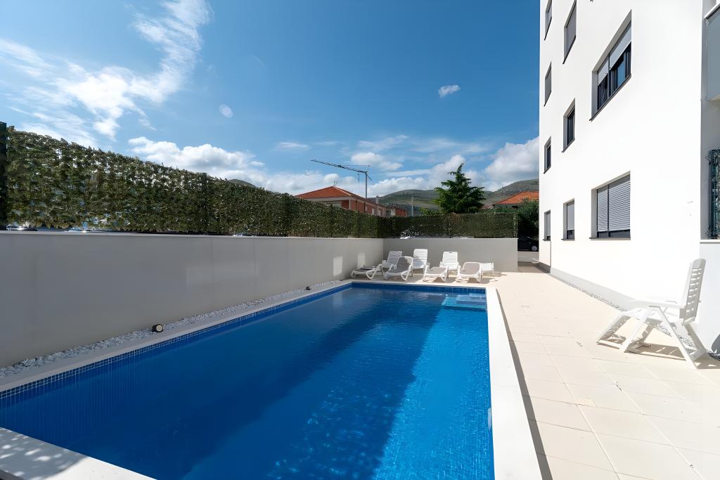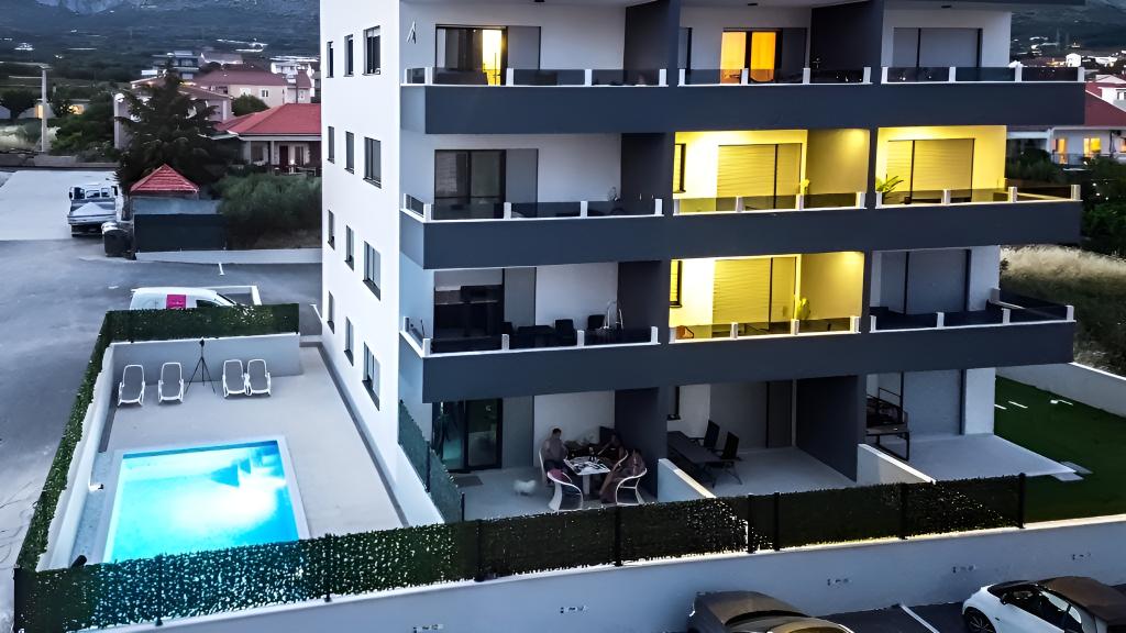 El alojamiento se encuentra en un edificio moderno y de reciente construcción, en un entorno tranquilo y bien cuidado, ideal para unas vacaciones relajantes y sin preocupaciones. El establecimiento ofrece a sus huéspedes una piscina exterior, perfecta para disfrutar en los días cálidos, y aparcamiento gratuito. El apartamento consta de un dormitorio con una cómoda cama doble, un salón con sofá cama, una cocina totalmente equipada, un baño y un balcón. El espacio está decorado con un estilo moderno que prioriza la comodidad y la funcionalidad, creando un ambiente agradable y relajante. El balcón enriquece aún más el espacio y es el lugar perfecto para disfrutar del café de la mañana o relajarse al atardecer. Su ubicación garantiza privacidad y tranquilidad, a la vez que ofrece fácil acceso a todos los servicios importantes de la zona, lo que convierte a este alojamiento en la combinación ideal de descanso y practicidad.