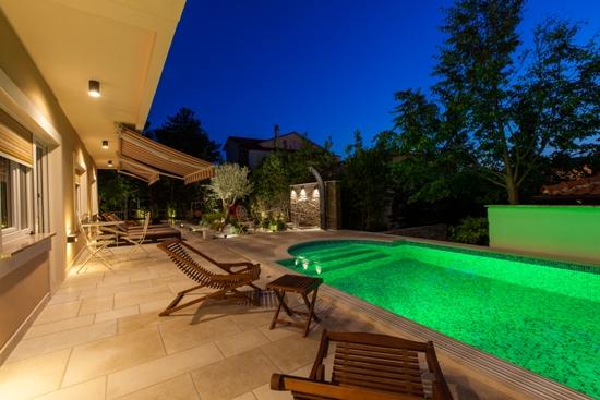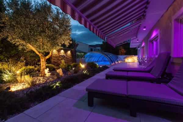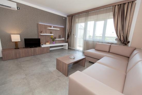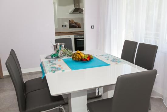 Tasa turistica no está incluida en el precio.Ambiente del hogar enriquecida por un jardín mediterráneo y una gran piscina con un sistema de calefacción y refrigeración, hidromasaje, chorros de masaje de aire y la natación contracorriente, zona de solarium con hamacas, y el espacio para la socialización. En el jardín un parque infantil para los niños con una media vuelta y corredera, en el que el anti-estrés coloca sustrato. Los huéspedes muy tranquilas unidades de inversores divididos. Los huéspedes pueden utilizar el acceso gratuito a Internet (Wi-Fi) y televisión por satélite. Apartamentos para 4 y 5 es un aparcamiento Ayudar en la organización de viajes dentro y fuera de la región de los lagos de Plitvice, Krk, Rab, Istria. El número básico de camas - 2 camas extra 2 extra de 15 euros por cama / noche. Niños menores de un año de estancia gratis.